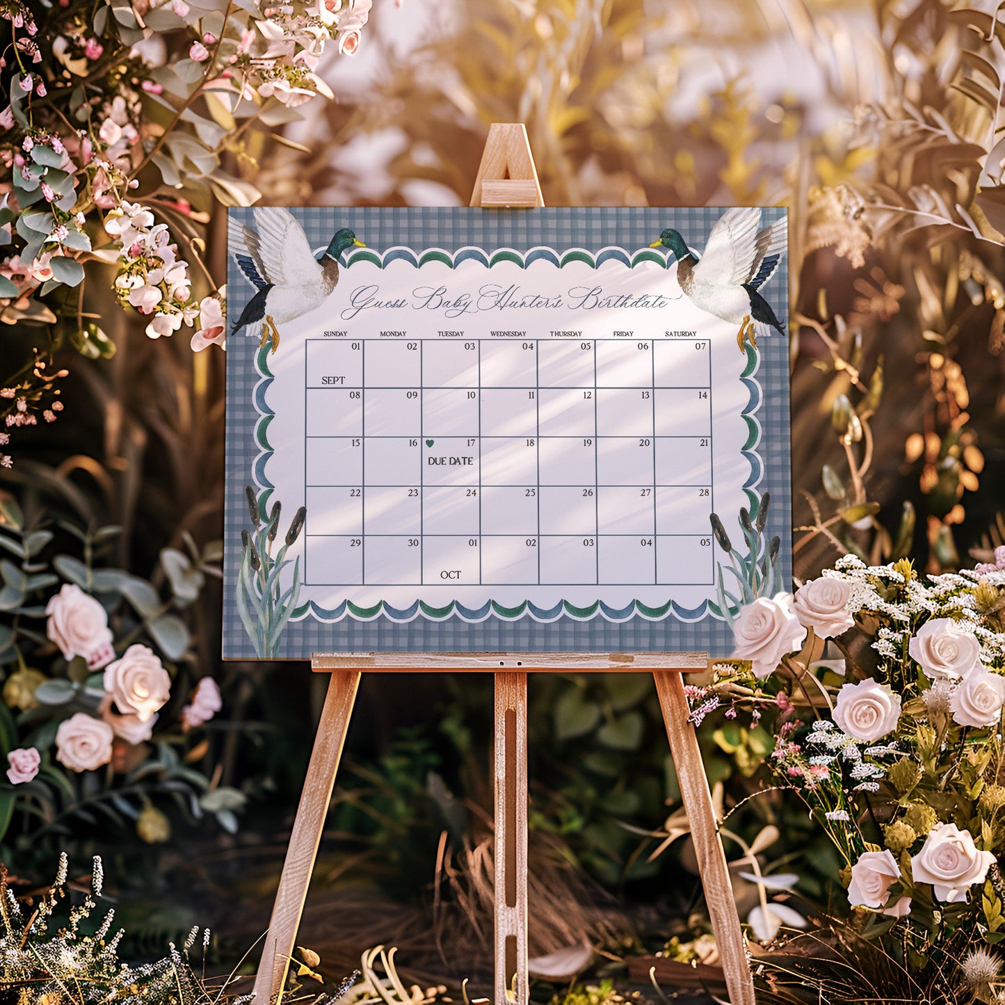 Mallard Baby Shower Guess the Date Game Calendar Template