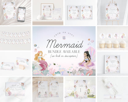 Mermaid Birthday Party Bundle Printable Template, enchanted under the sea birthday for girl, pastel magical mermaid pool party