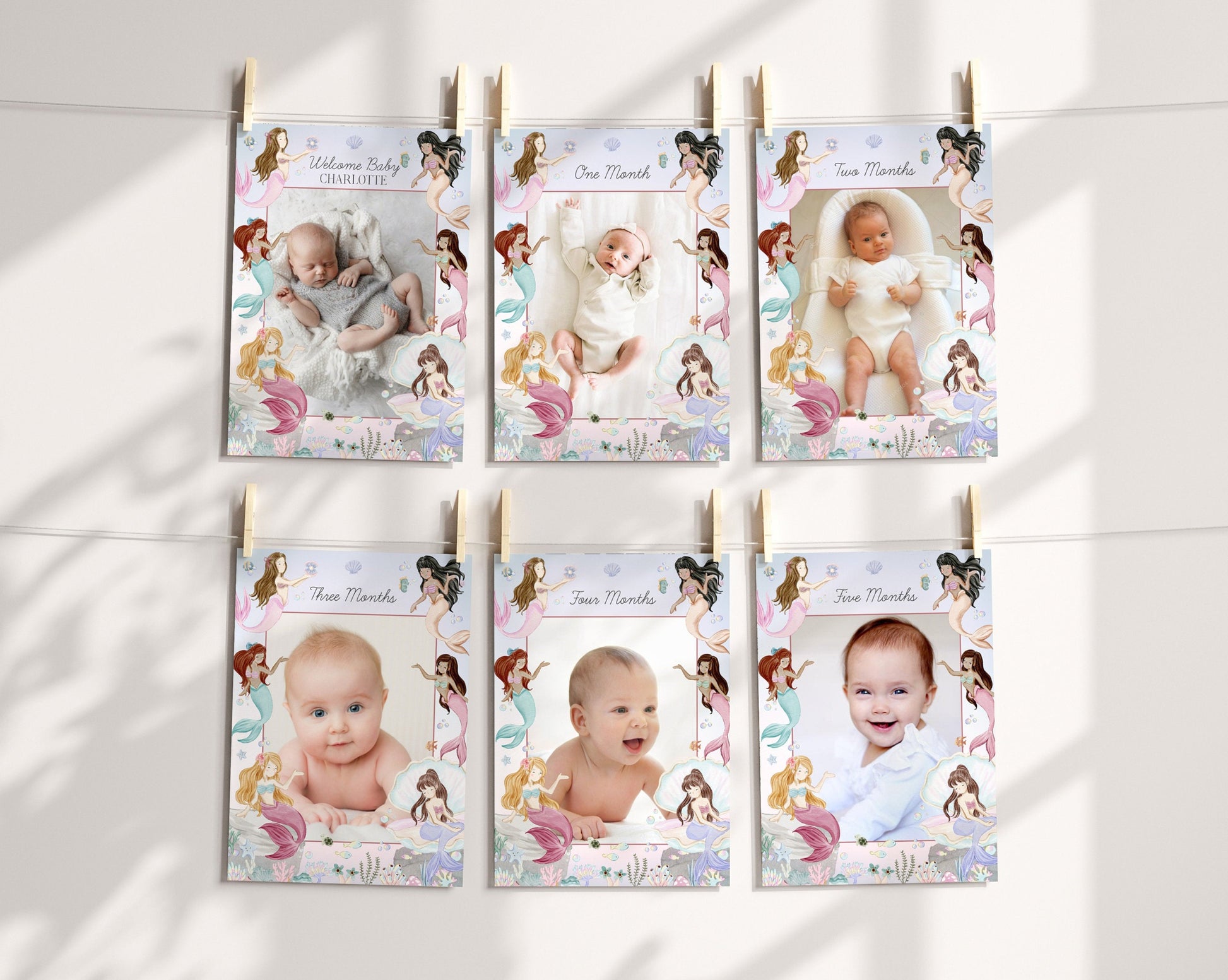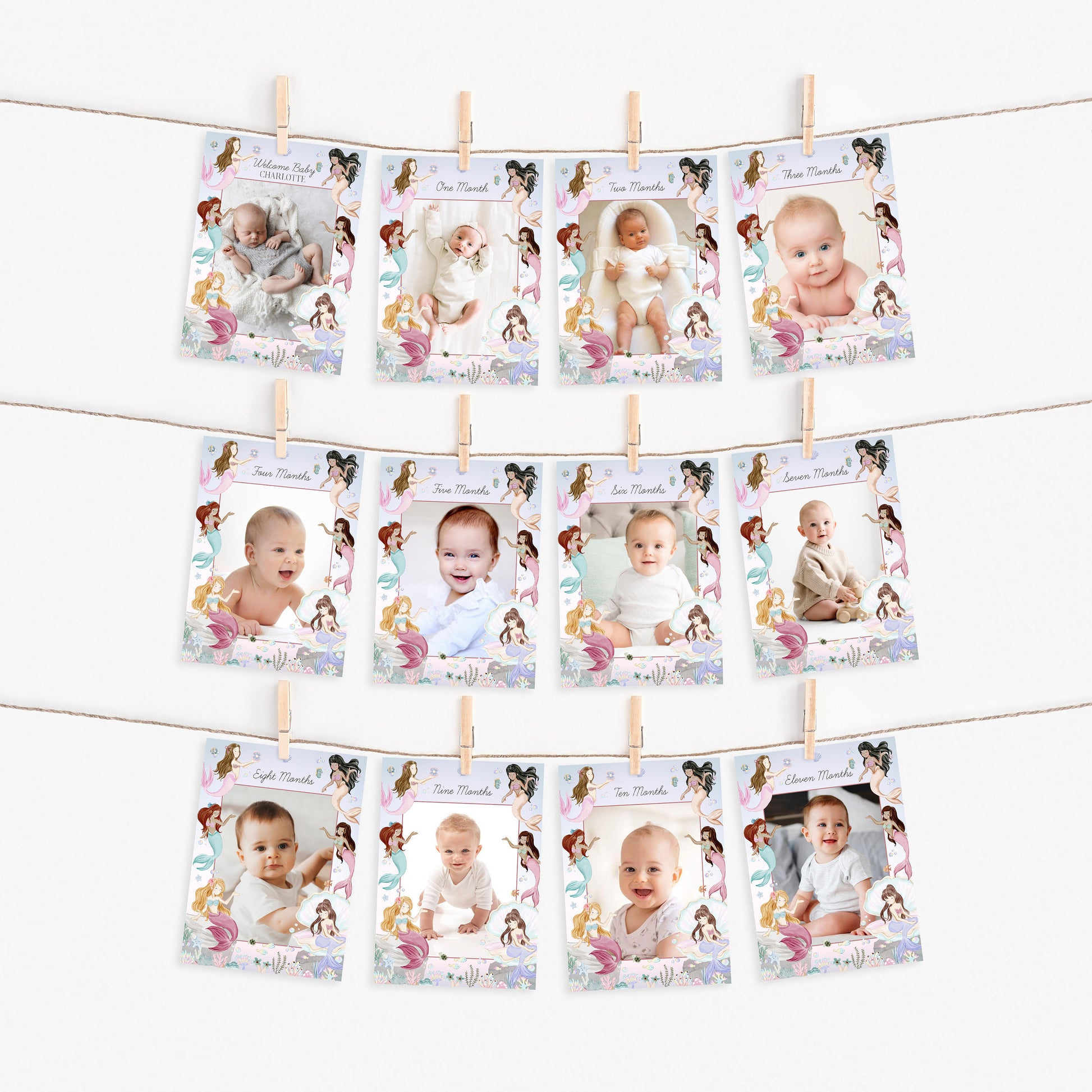 Mermaid 1st Birthday Milestone Banner Printable Template, enchanted under the sea 1st birthday party for girl, pastel magical mermaid party