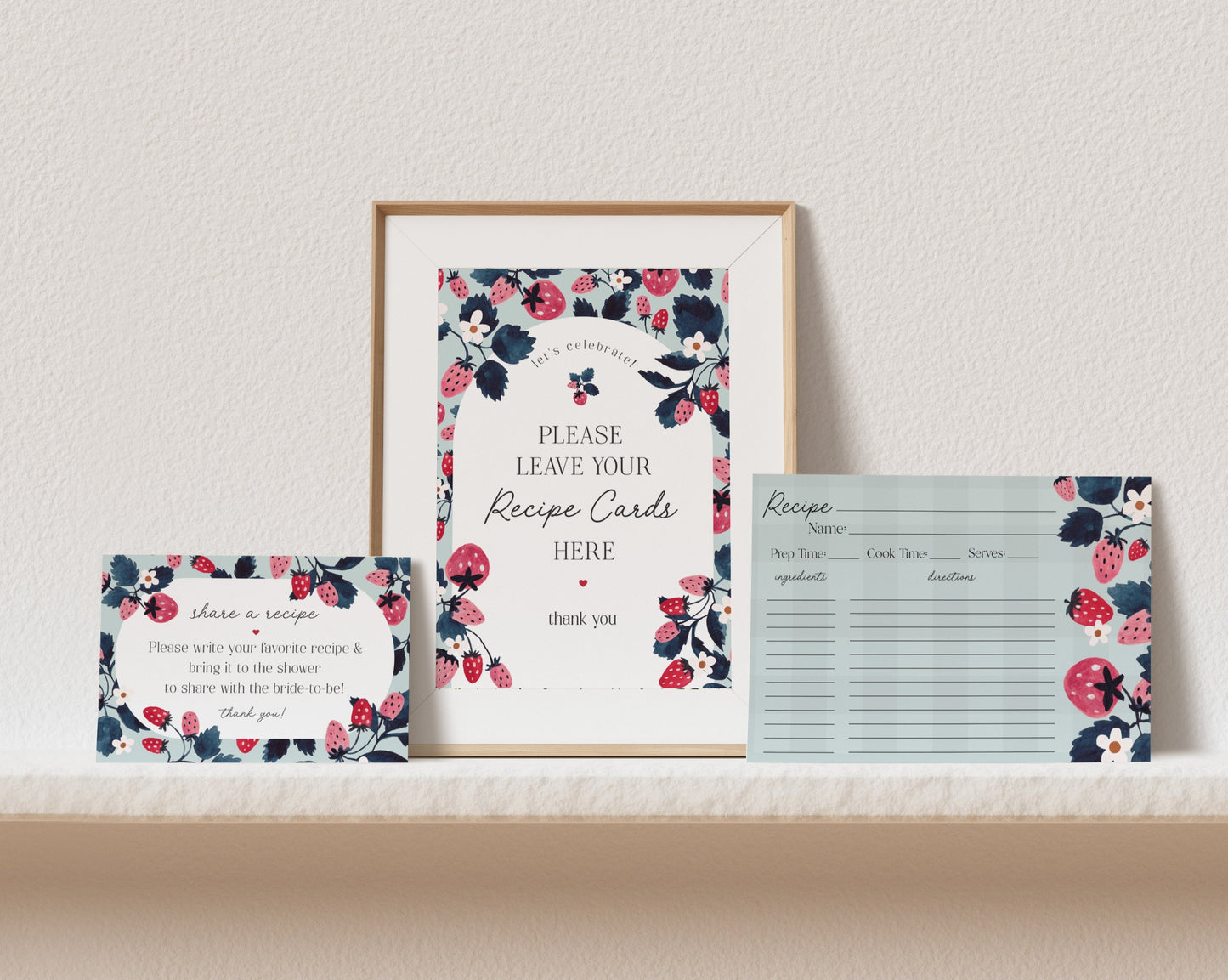 Mint Strawberry Bridal Showerv Recipe Set Printable Template