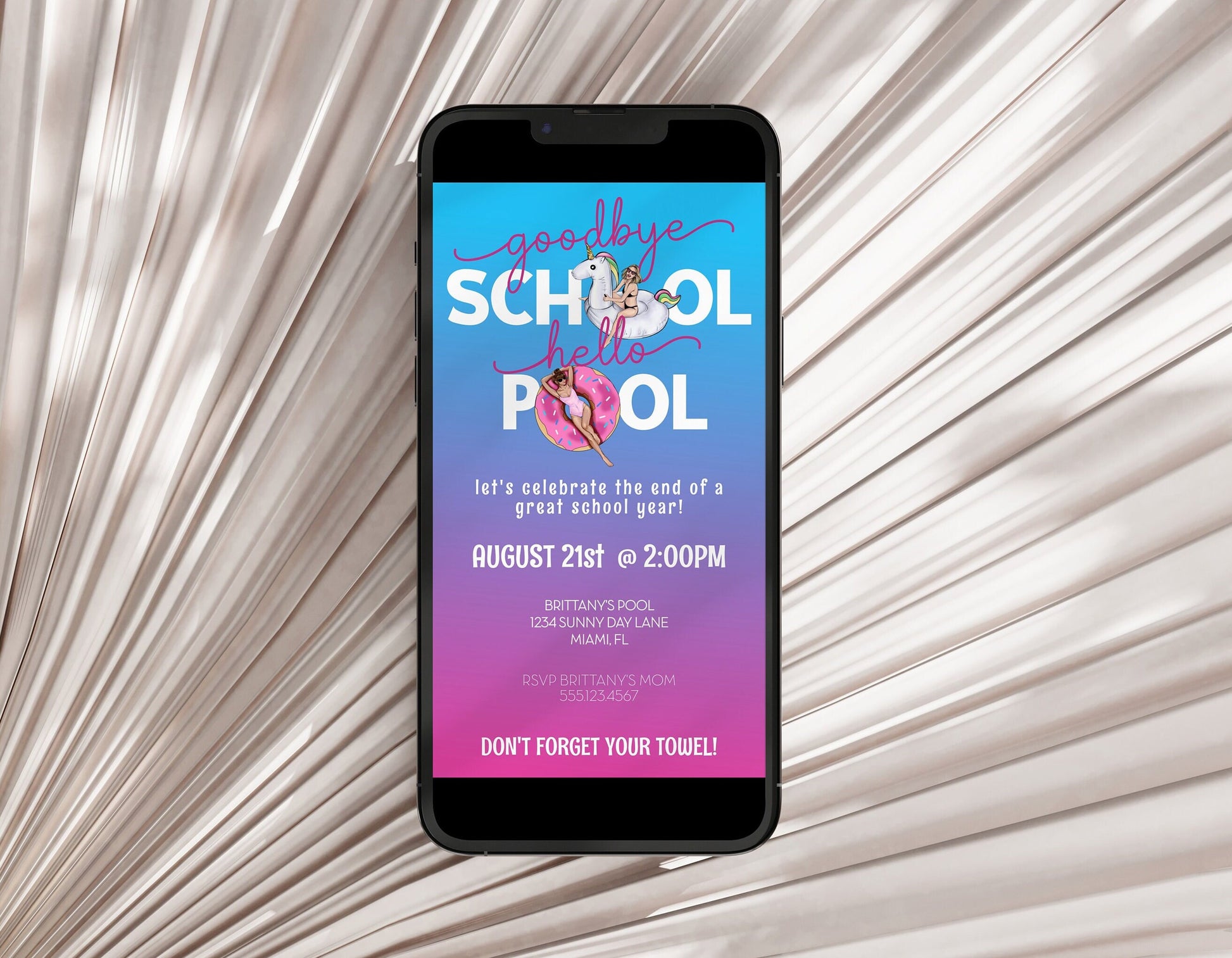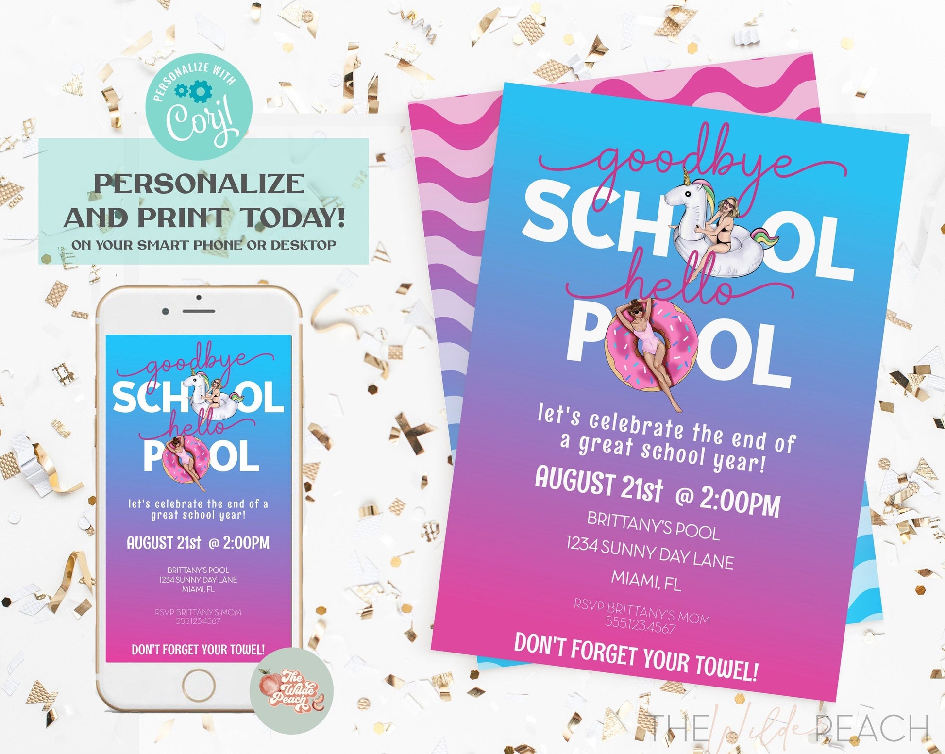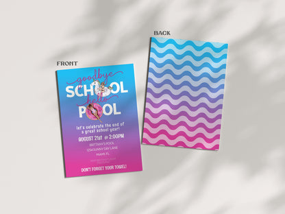 Ombre Pool Party Sweet 16 Birthday Invitation Printable Template