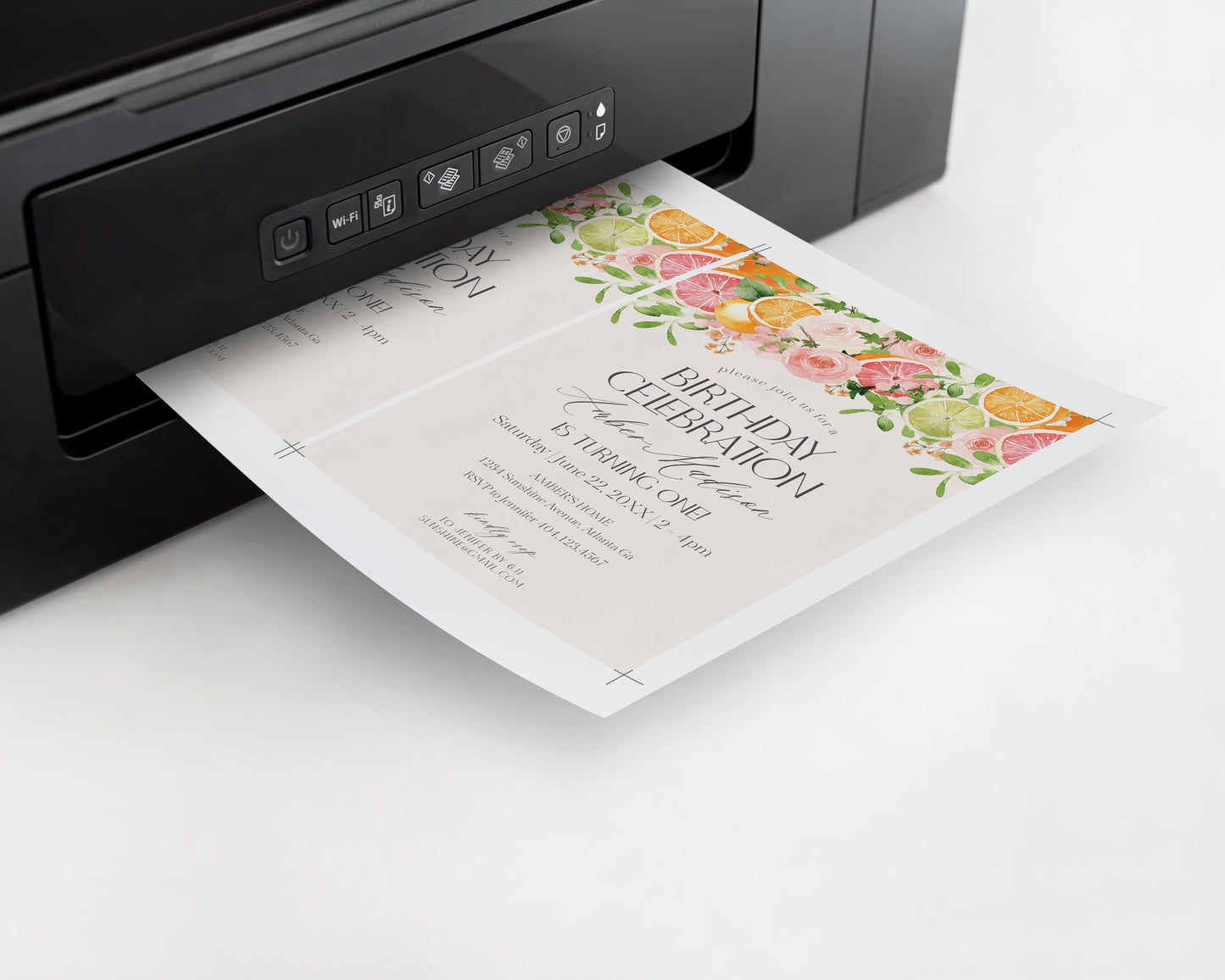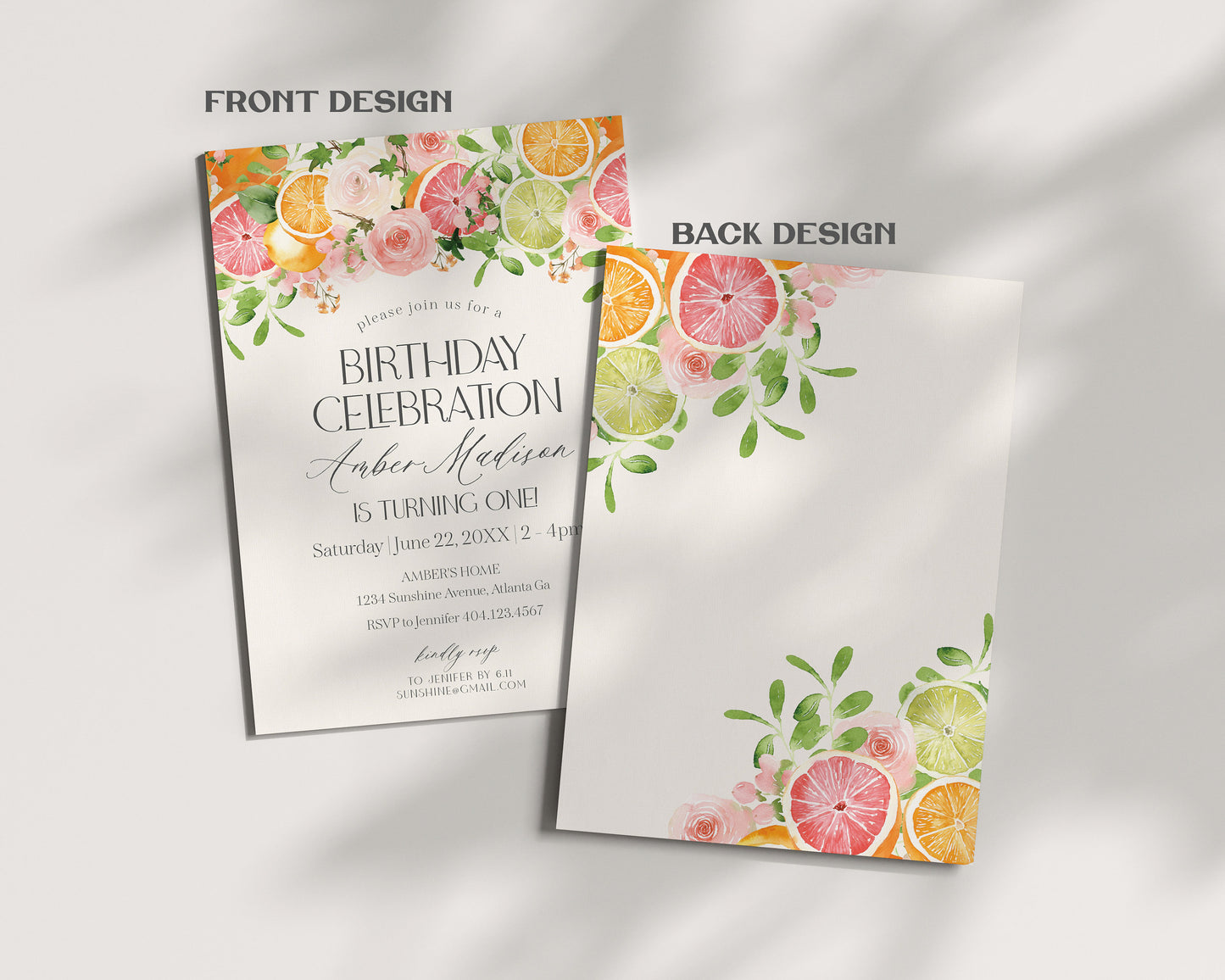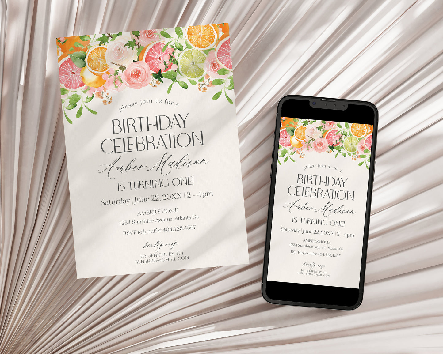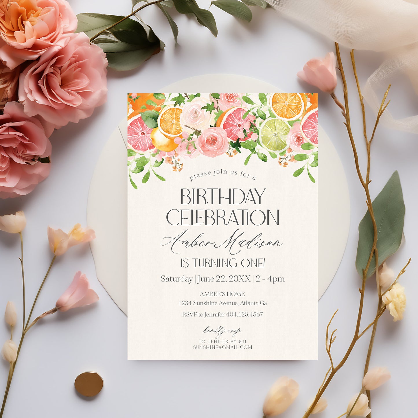 Pastel Citrus Birthday Invitation Printable Template, Little Cutie Party Decor for Summer Birthday Party Decor, Mandarin Birthday Party