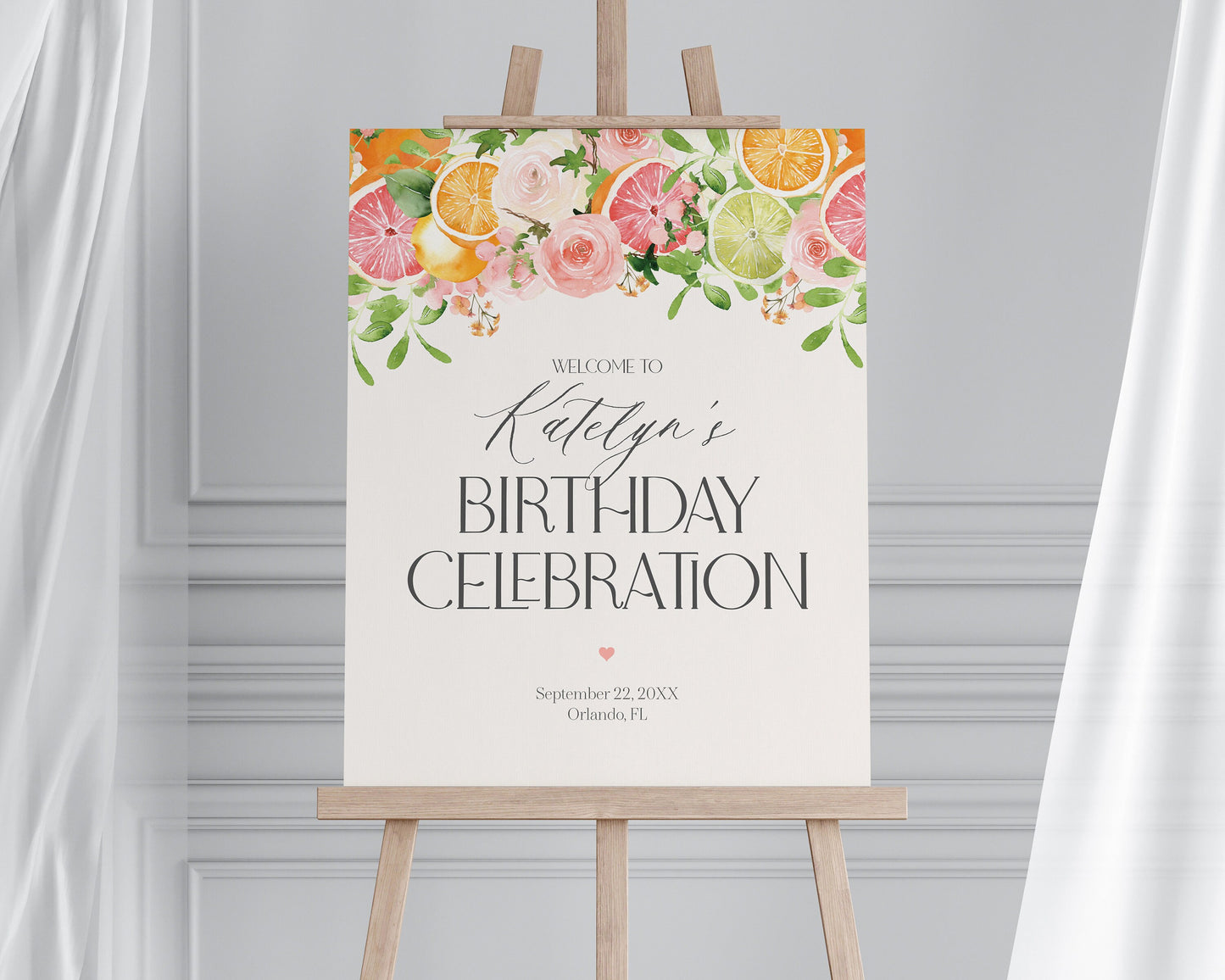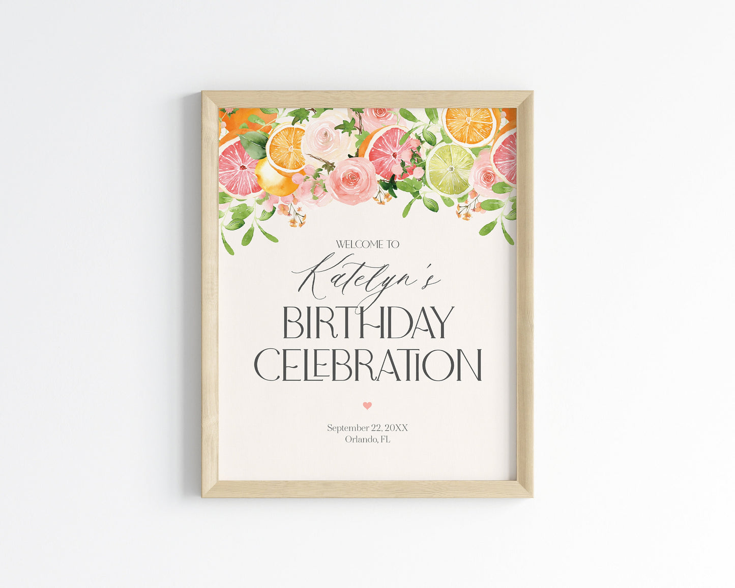 Pastel Citrus Birthday Welcome Sign Printable Template