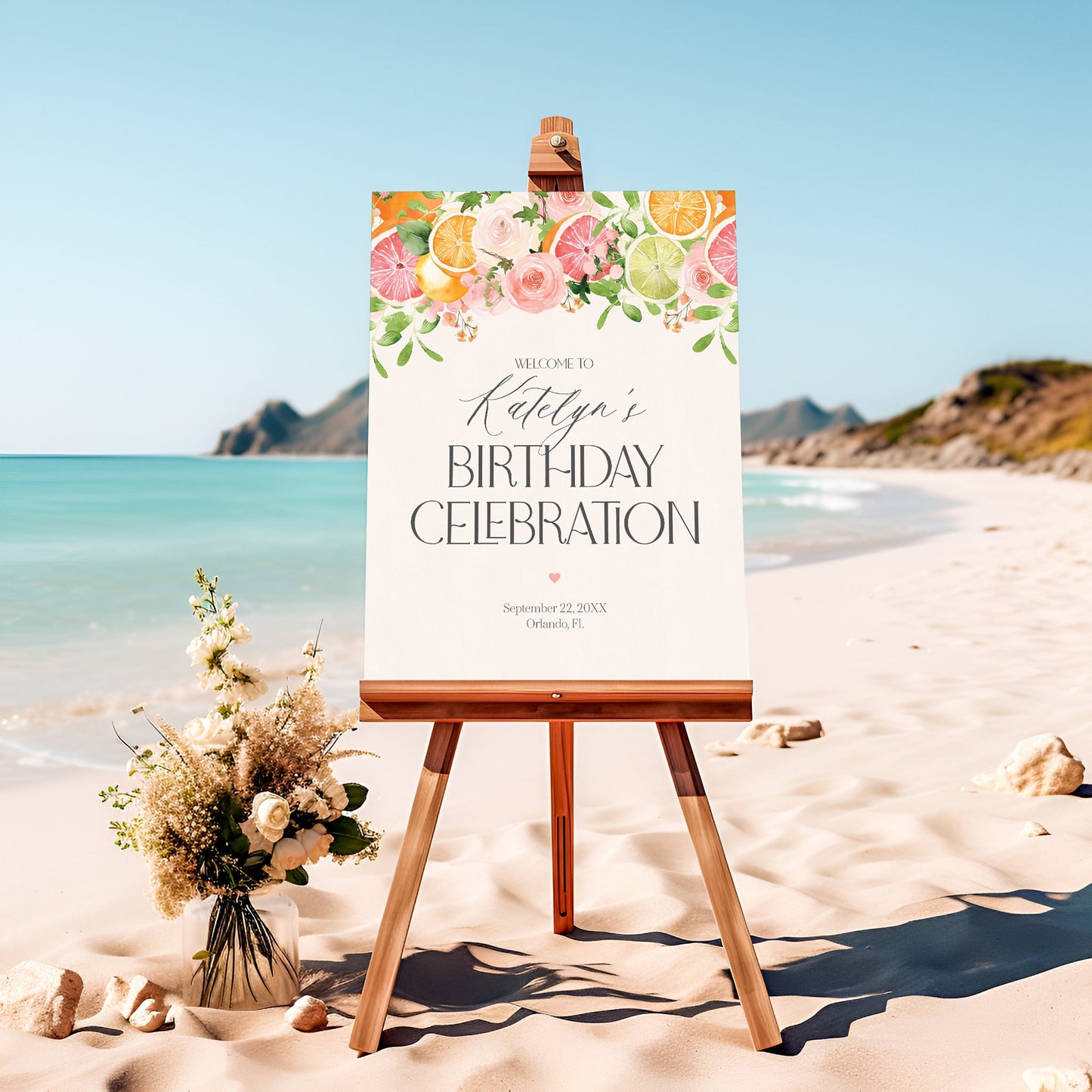 Pastel Citrus Birthday Welcome Sign Printable Template, Little Cutie Coastal Party Decor for Summer Tropical Birthday Party Decor