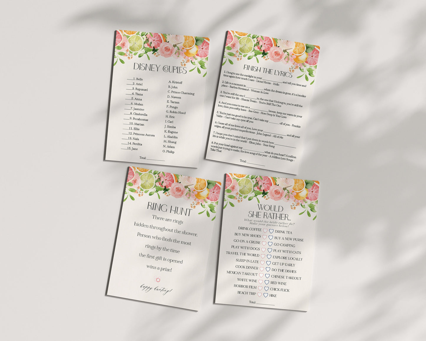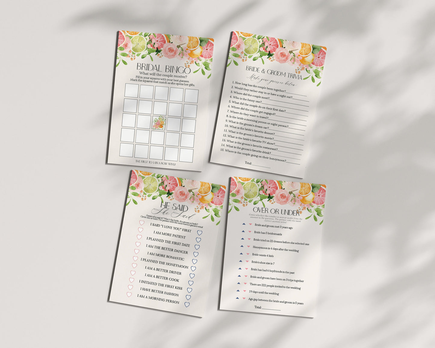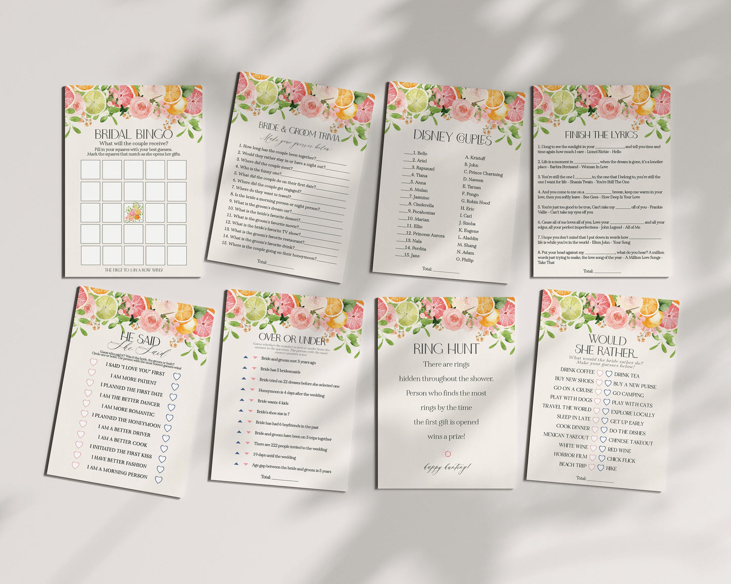 Pastel Citrus Bridal Shower Games Set Printable Template