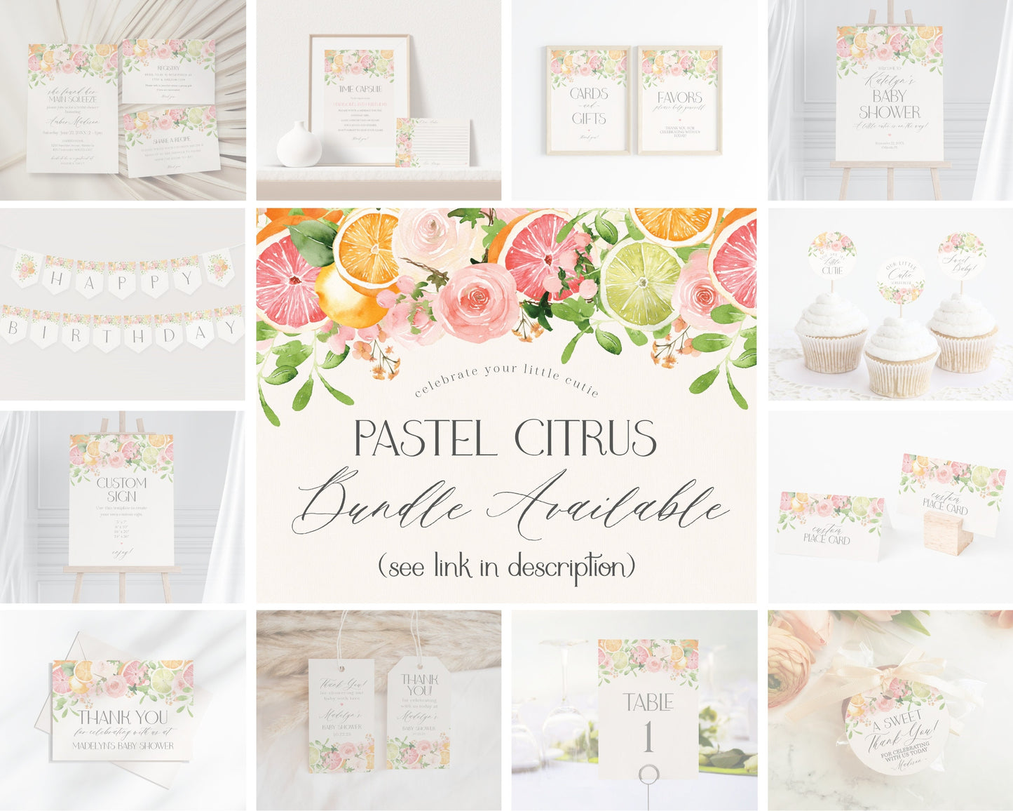 Pastel Citrus Baby Shower Printable Bundle, Little Cutie Baby Sprinkle for Summer Baby Shower, Gender Neutral Tropical Baby Shower Decor