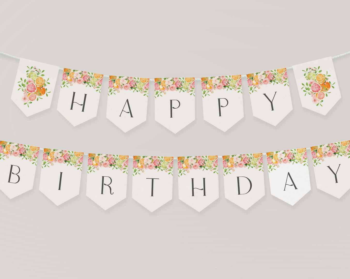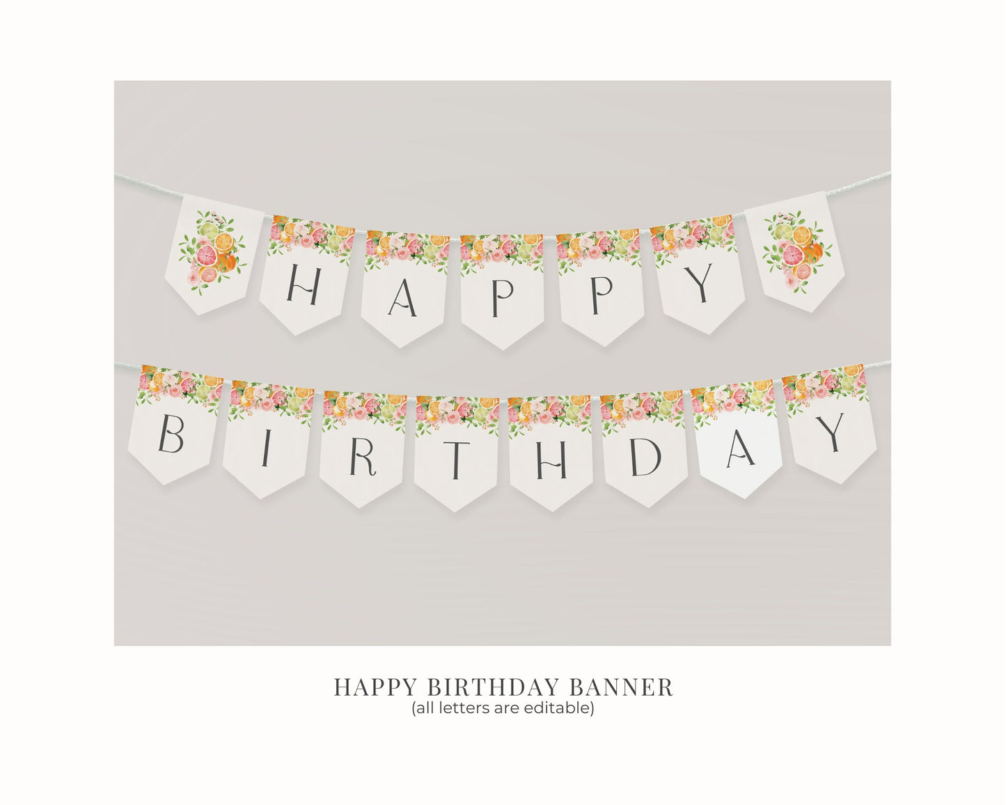 Pastel Citrus Happy Birthday Banner Printable Template, Little Cutie Coastal Party Decor for Summer Tropical Birthday Party Decor