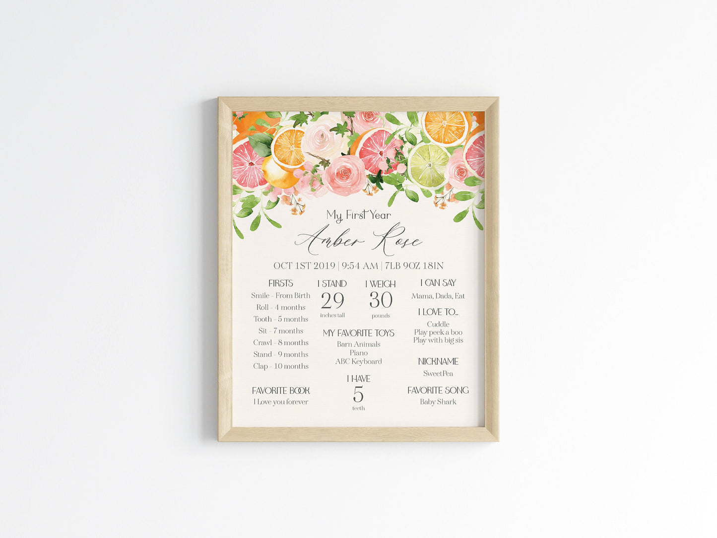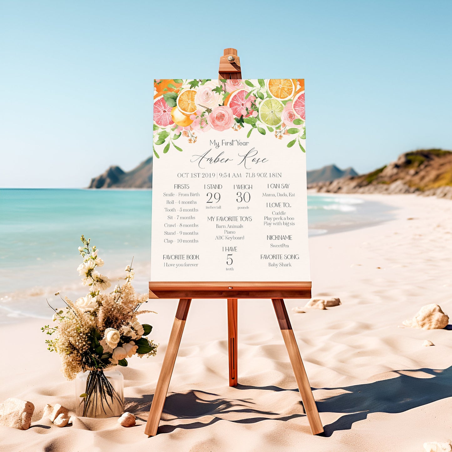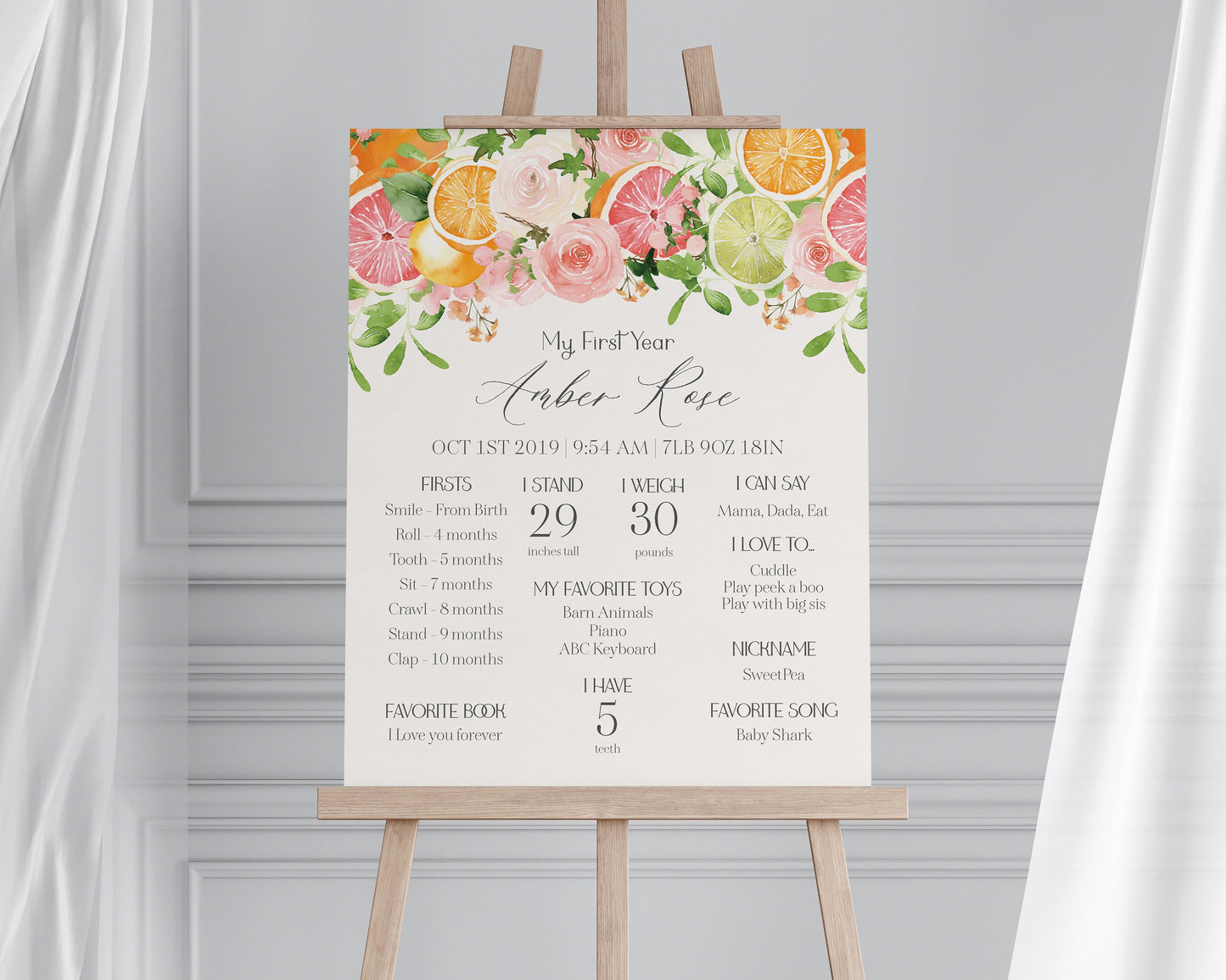 Pastel Citrus My First Year Milestone Sign Printable Template