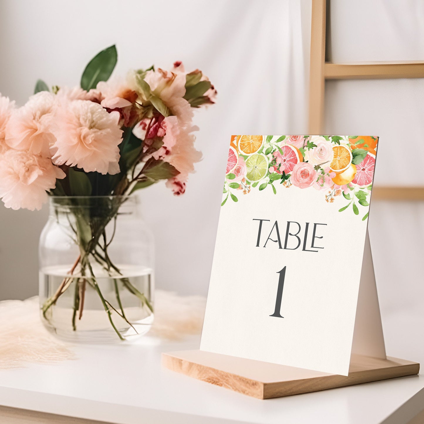 Pastel Citrus Table Number Cards Printable Template, Coastal Birthday Decor for Summer Tropical Baby or Bridal Shower, Tropical Party Decor