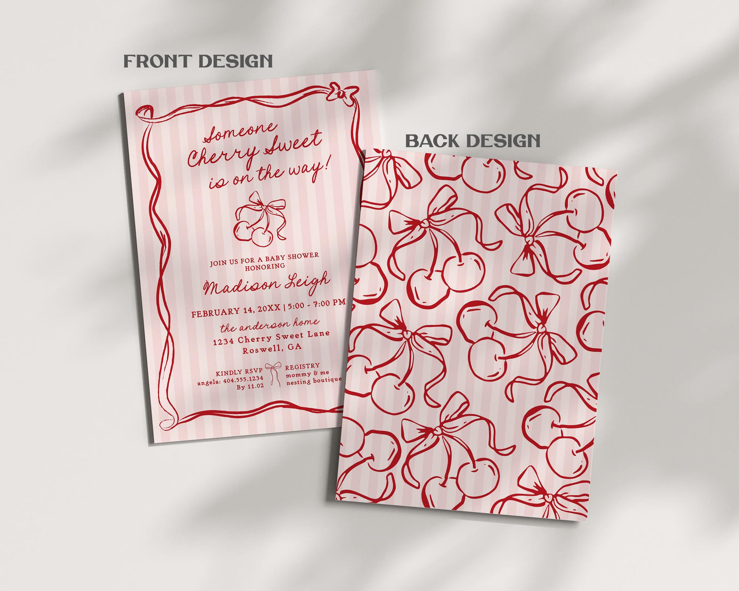 Pink Cherry Coquette Bow Cards & Gifts and Favors Sign Template, Retro Cherry on Top Baby Shower, Cherry Sweet Bridal Shower Birthday WP1038