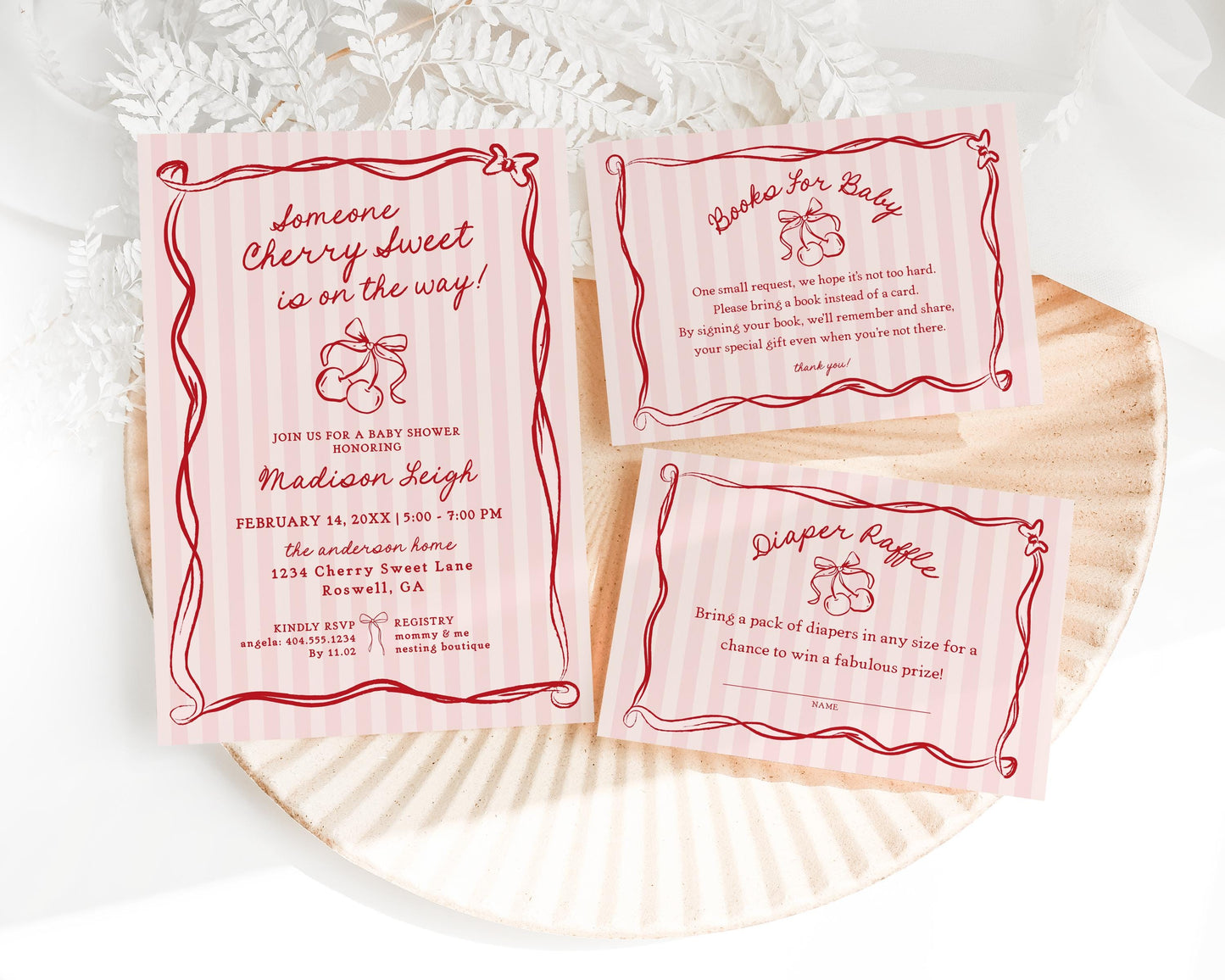 Pink Cherry Coquette Bow Baby Shower Bundle Template