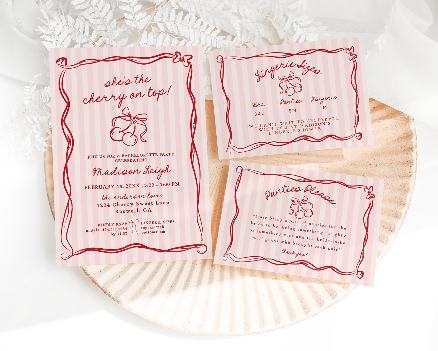 Pink Cherry Coquette Bow Bachelorette Party Bundle Template