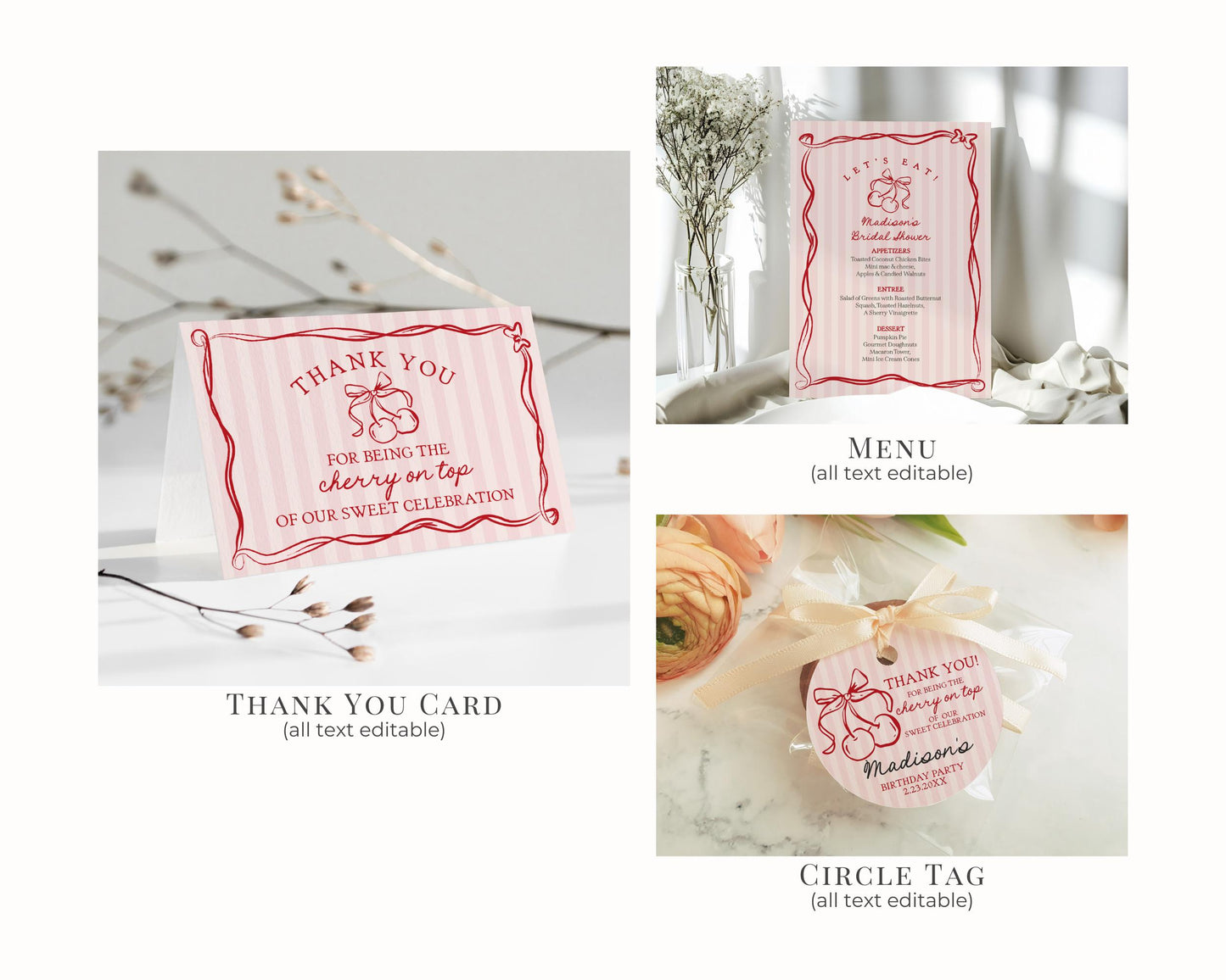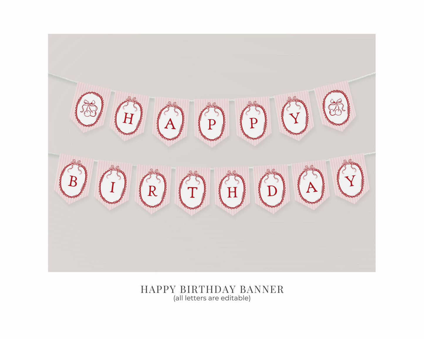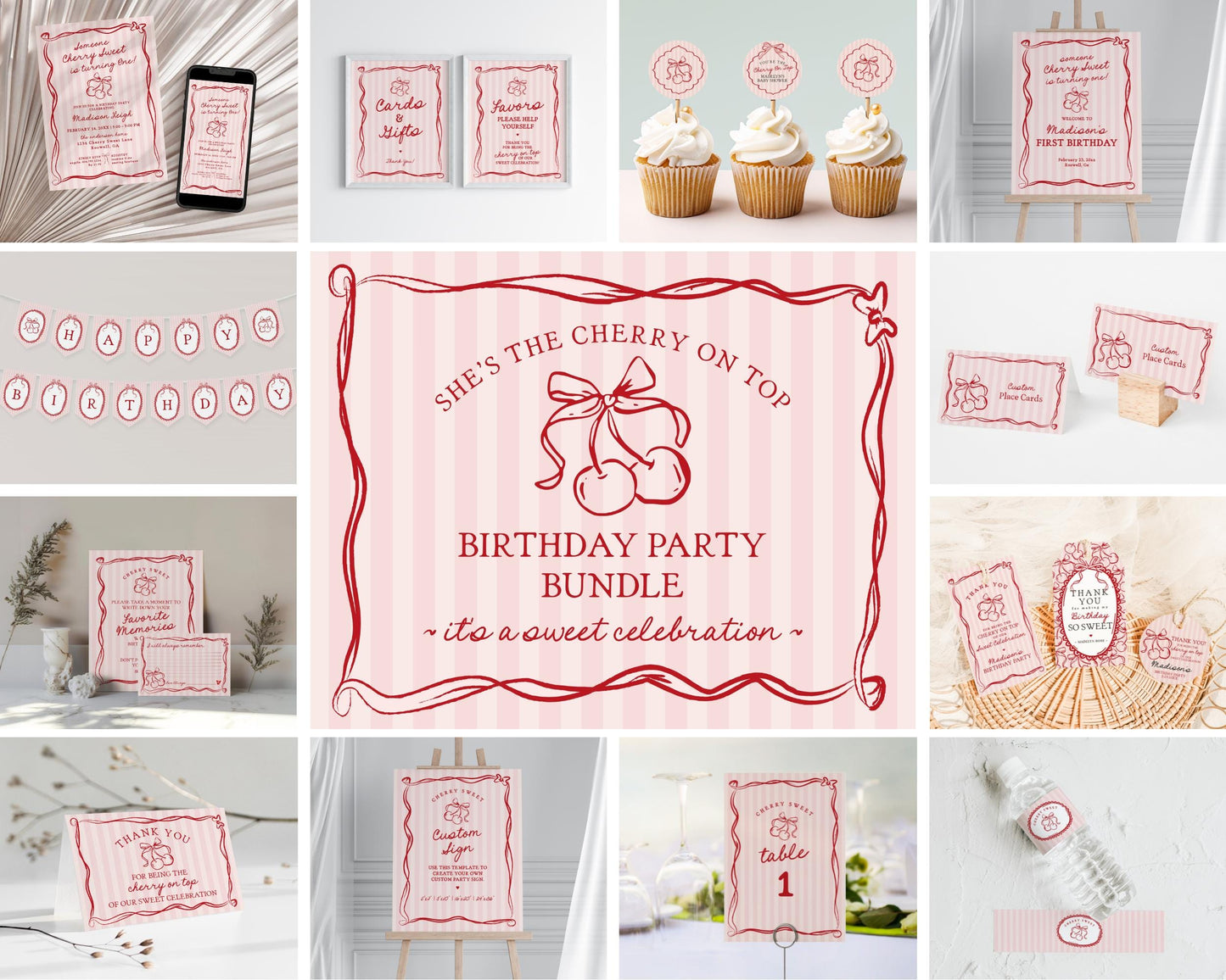 Pink Cherry Coquette Bow Birthday Bundle Template