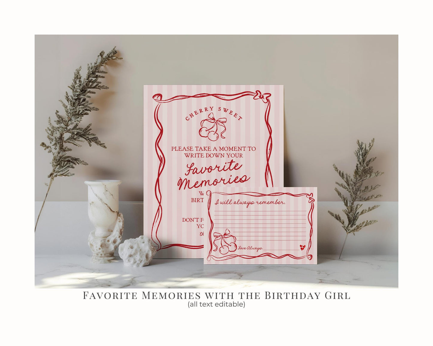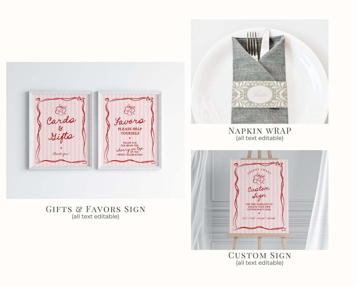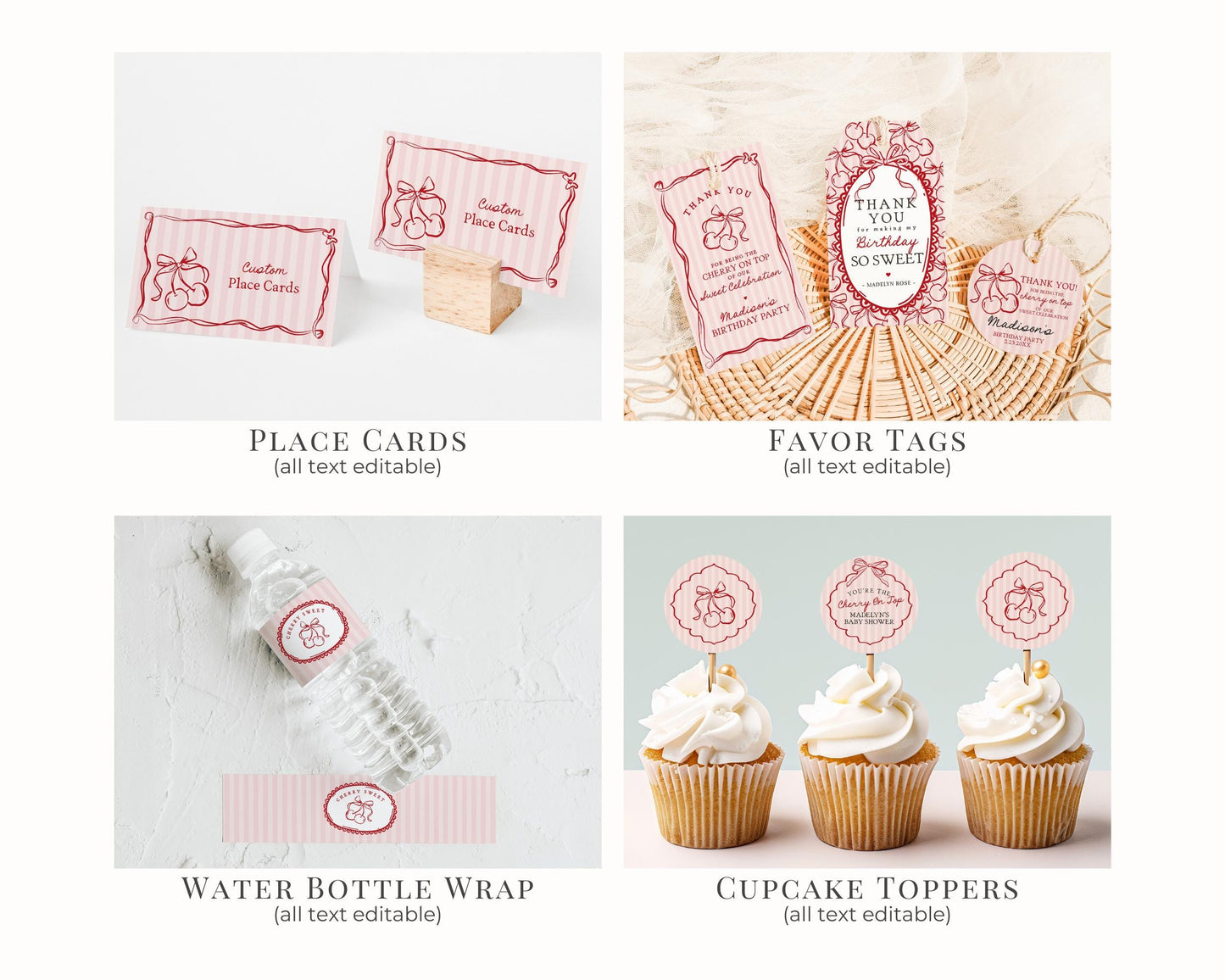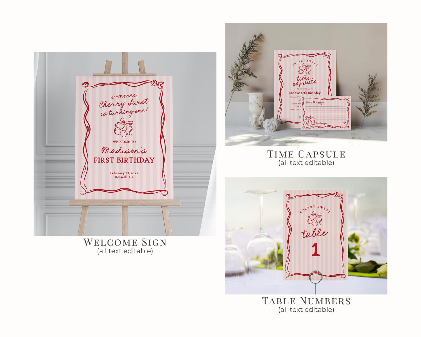 Pink Cherry Coquette Bow Birthday Bundle Template