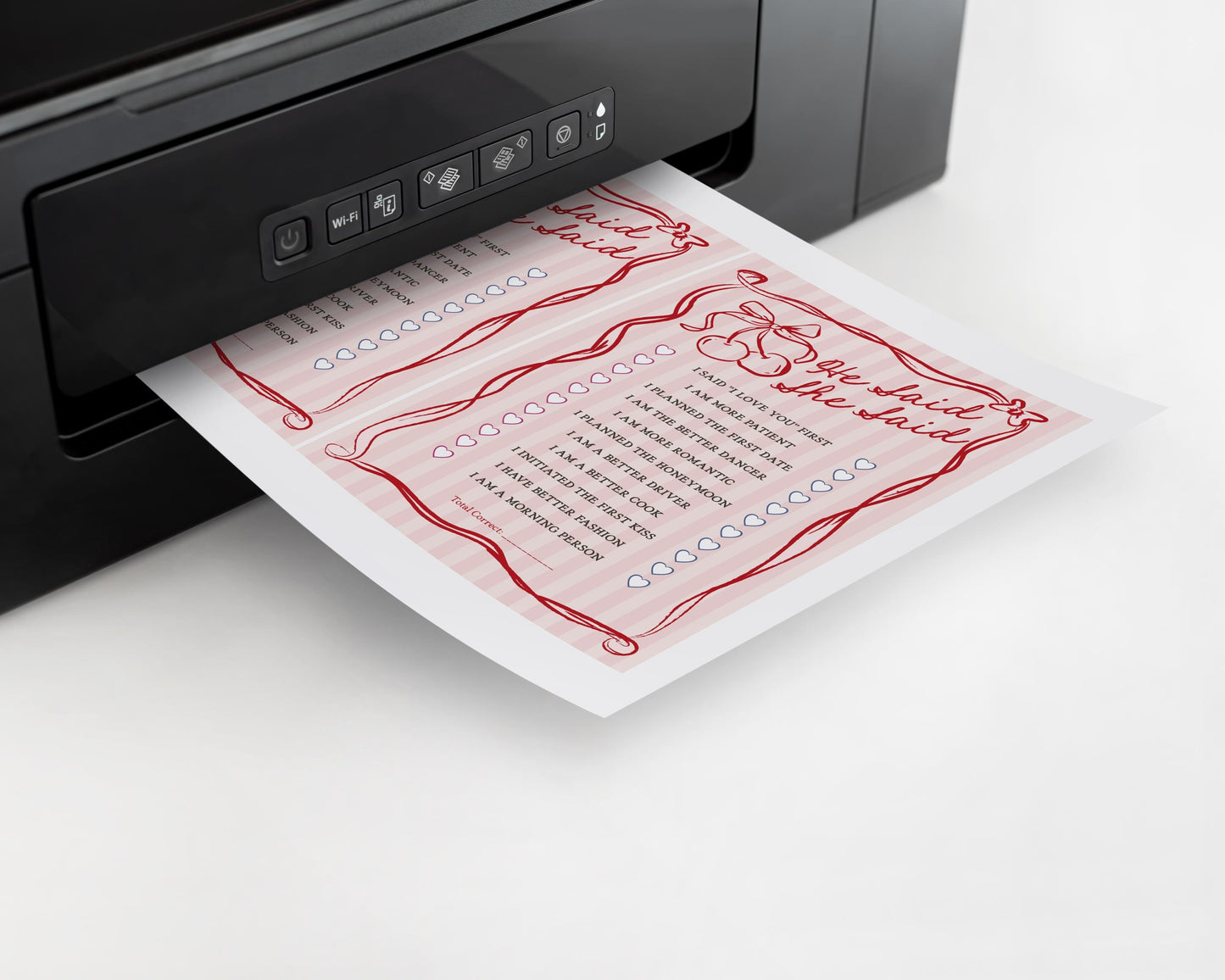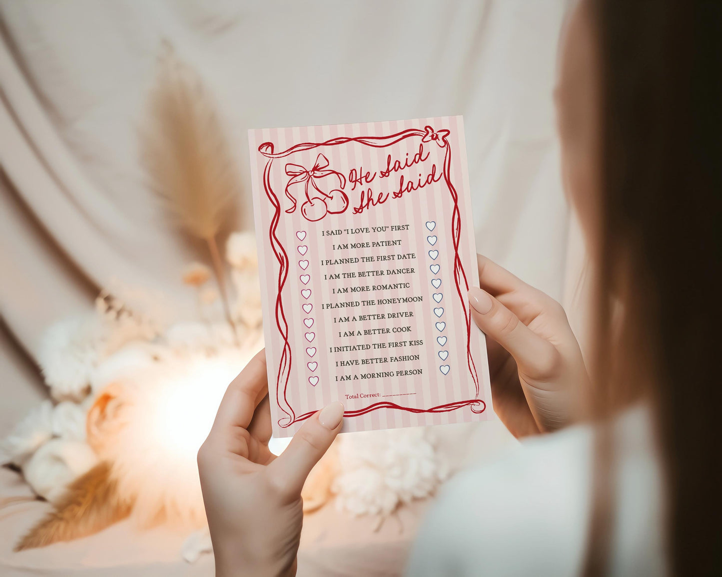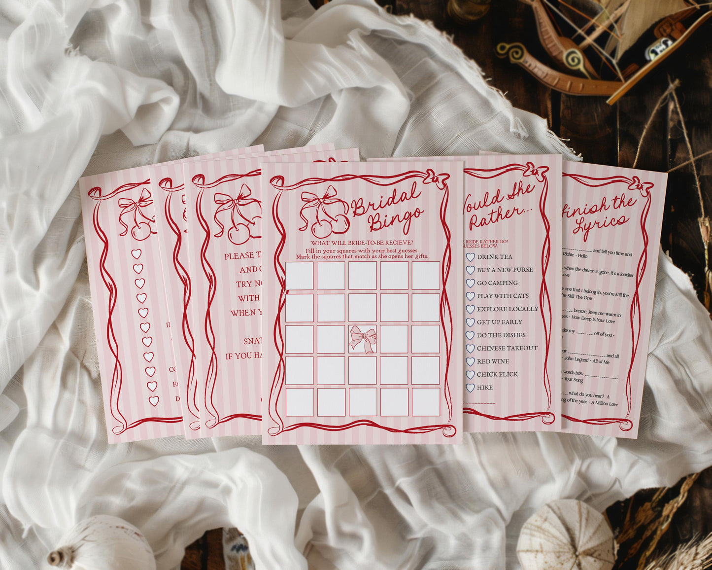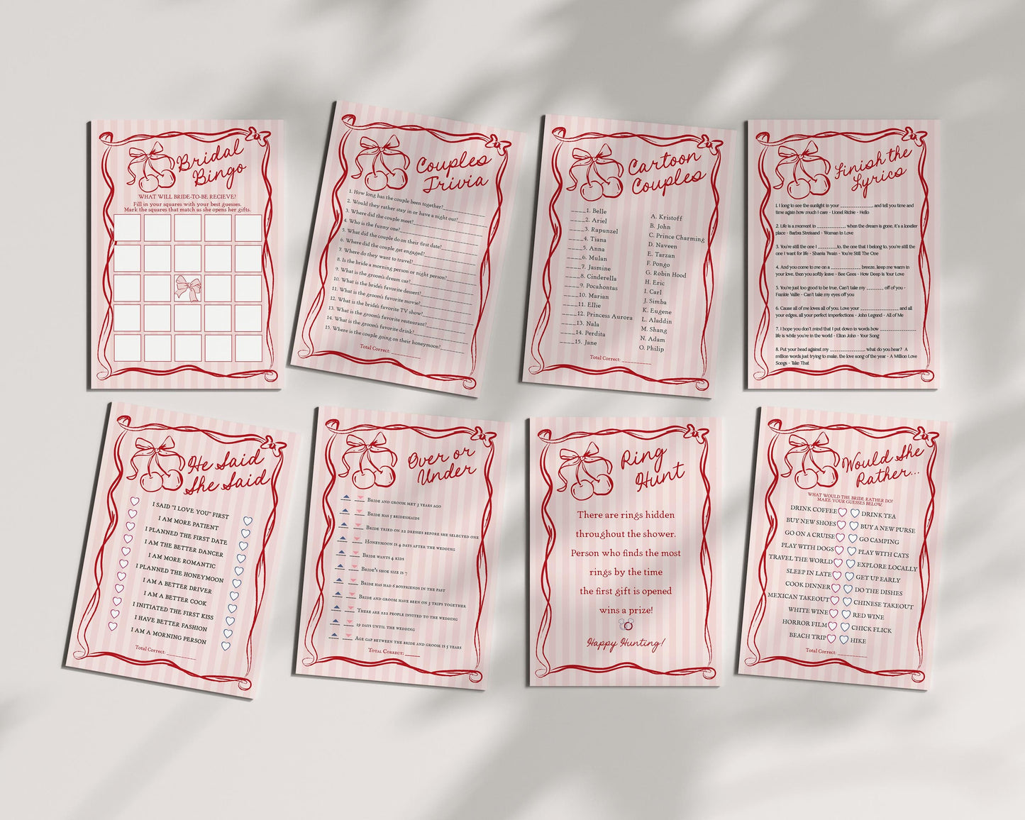 Pink Cherry Coquette Bow Bridal Shower Games Set Template