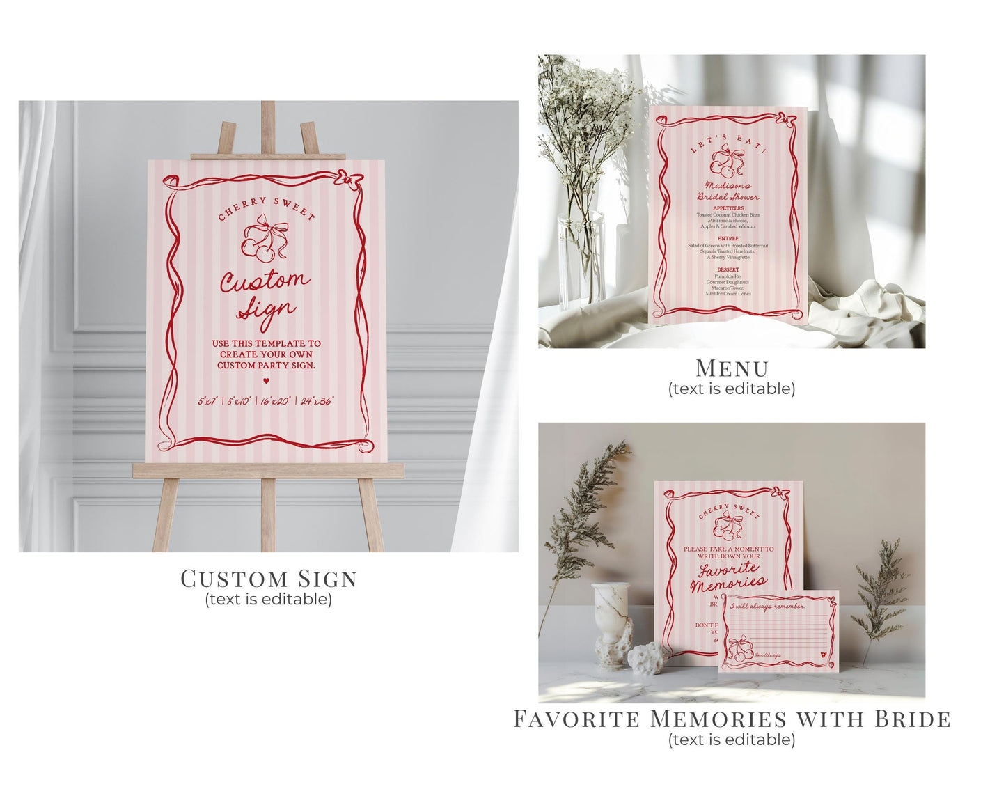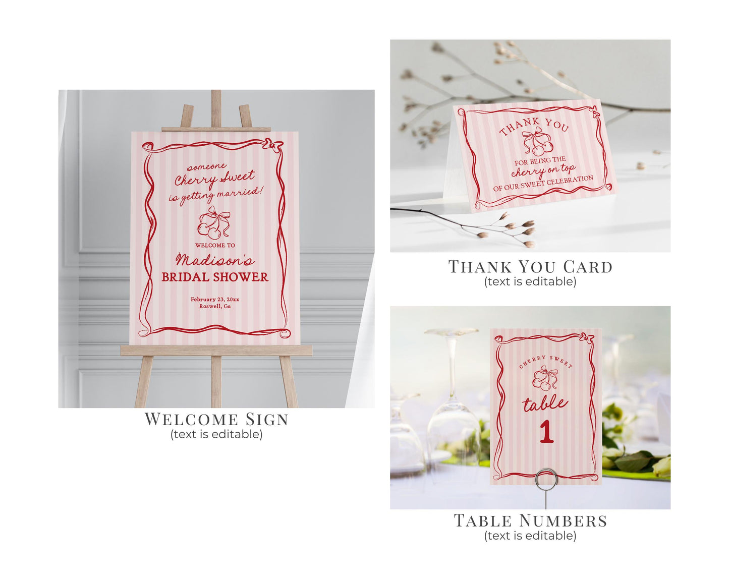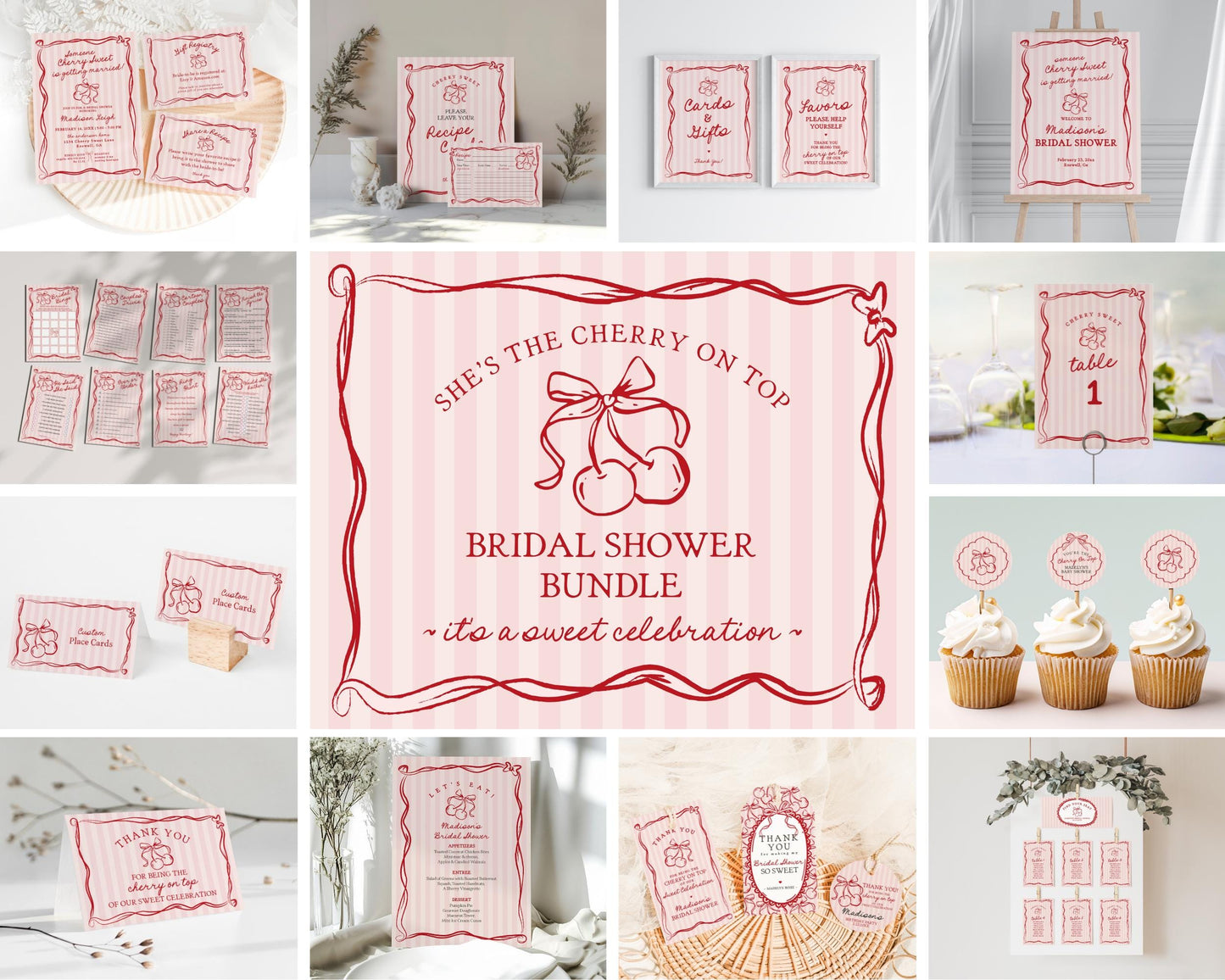 Pink Cherry Coquette Bow Bridal Shower Bundle Template