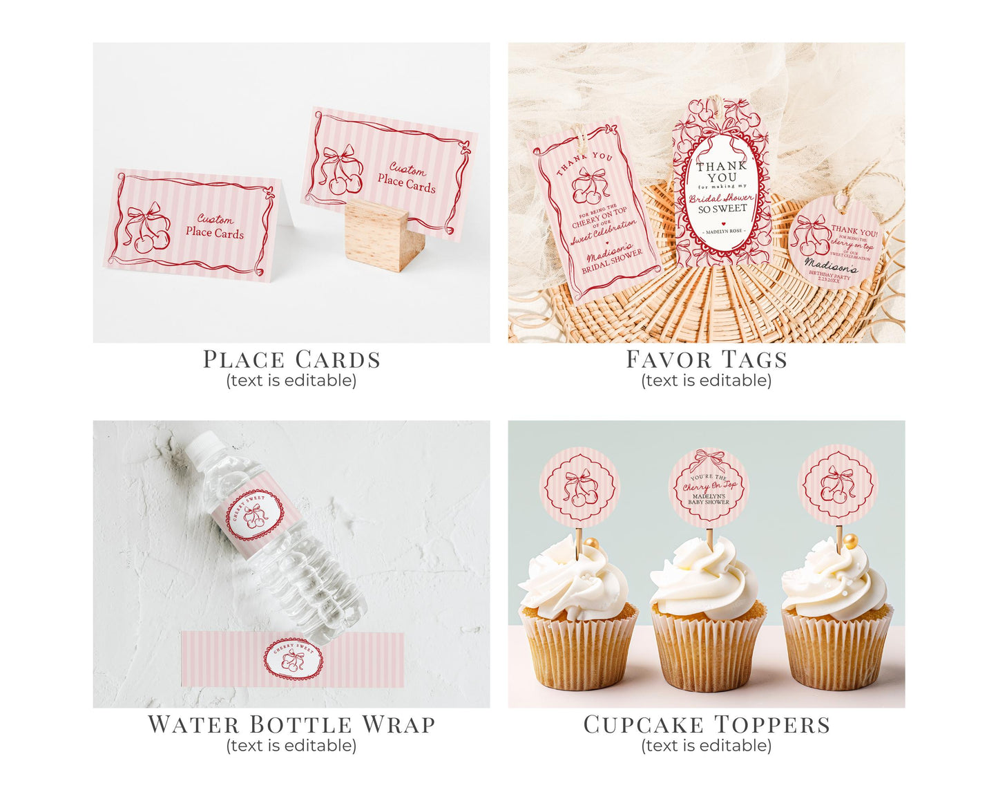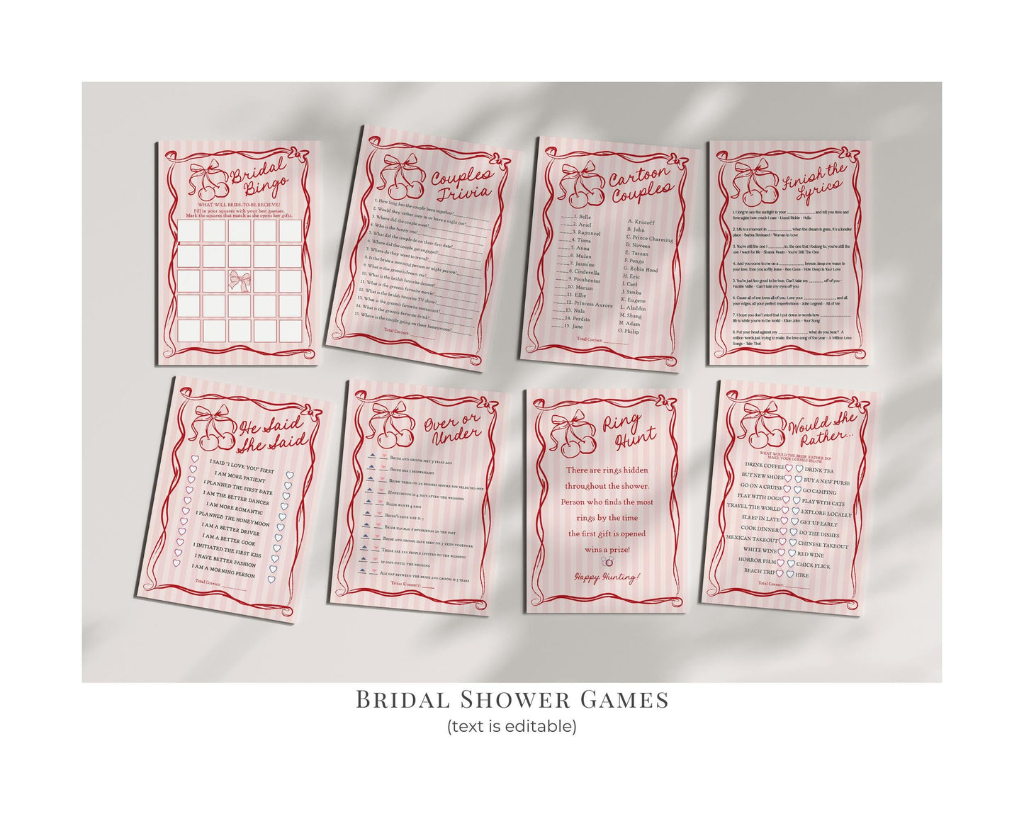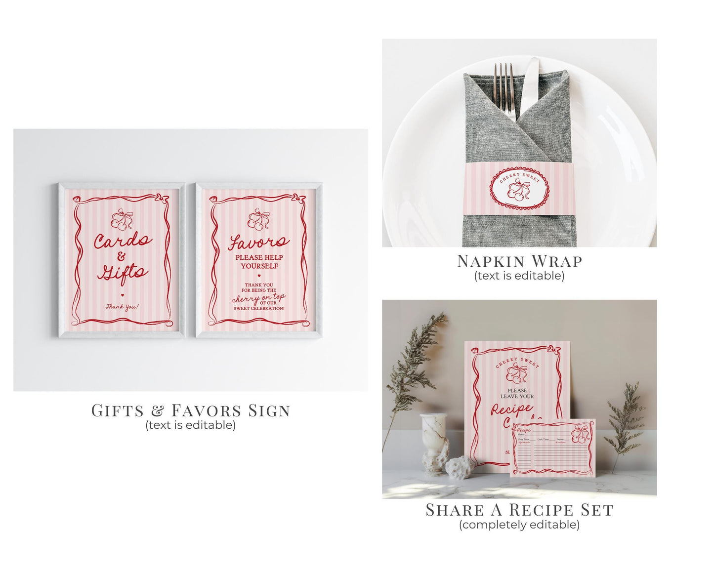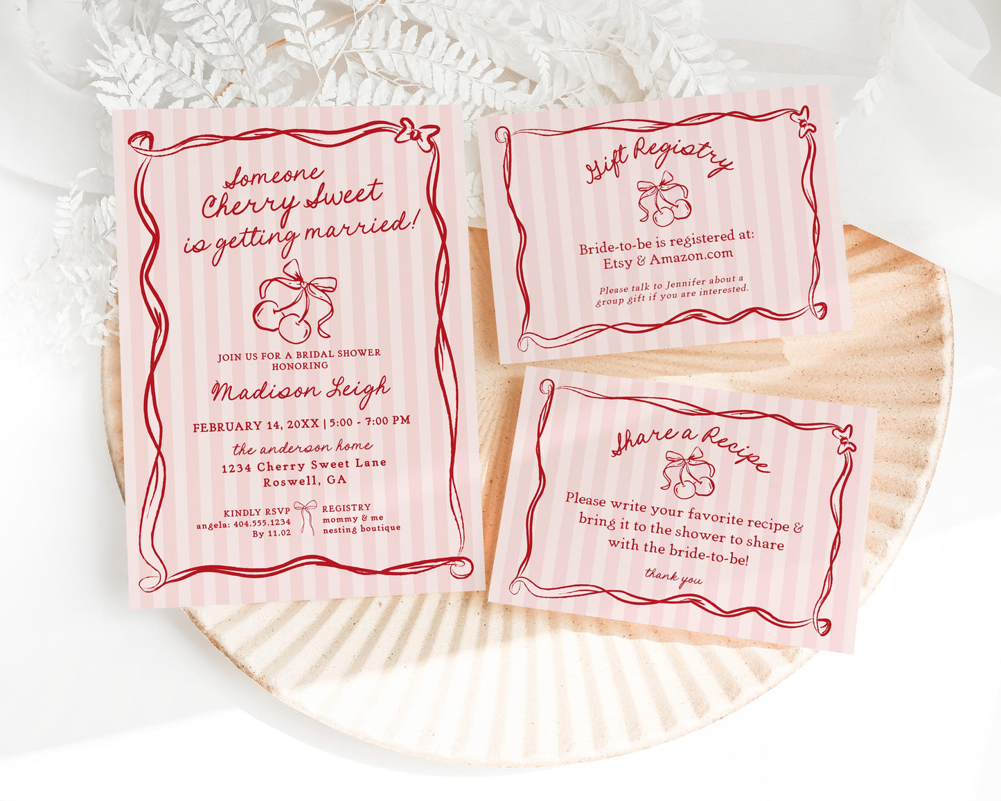 Pink Cherry Coquette Bow Bridal Shower Bundle Template