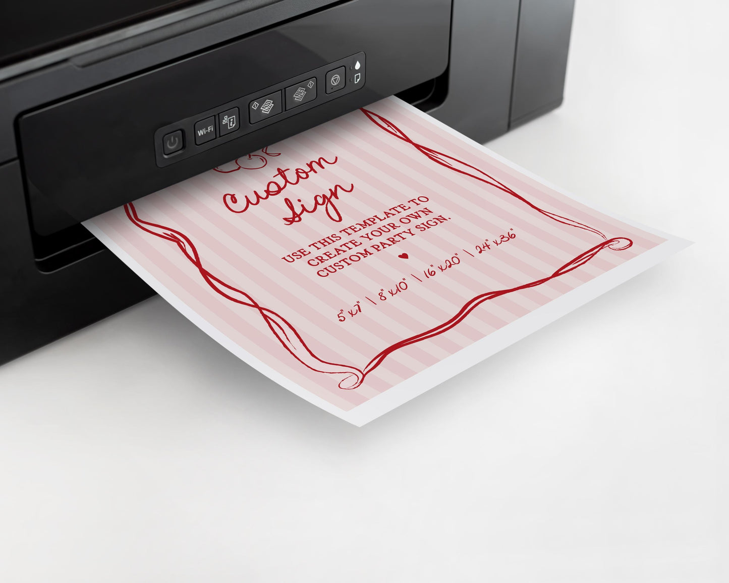 Pink Cherry Coquette Bow Birthday Welcome Sign Template