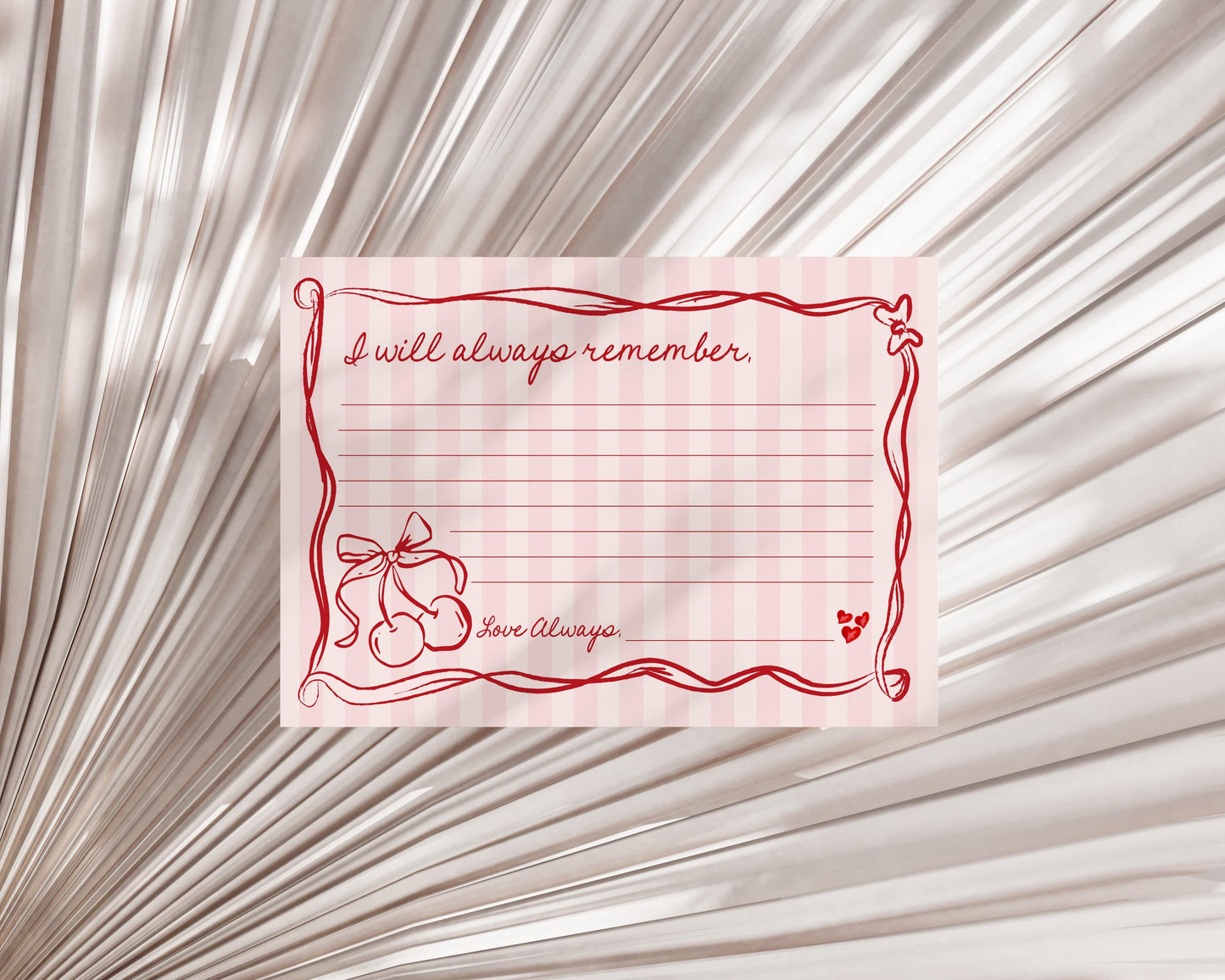 Pink Cherry Coquette Bow Favorite Memories with Bride Template, Retro Cherry on Top Bridal Shower, Hand Drawn Cherry Bridal Brunch WP1038
