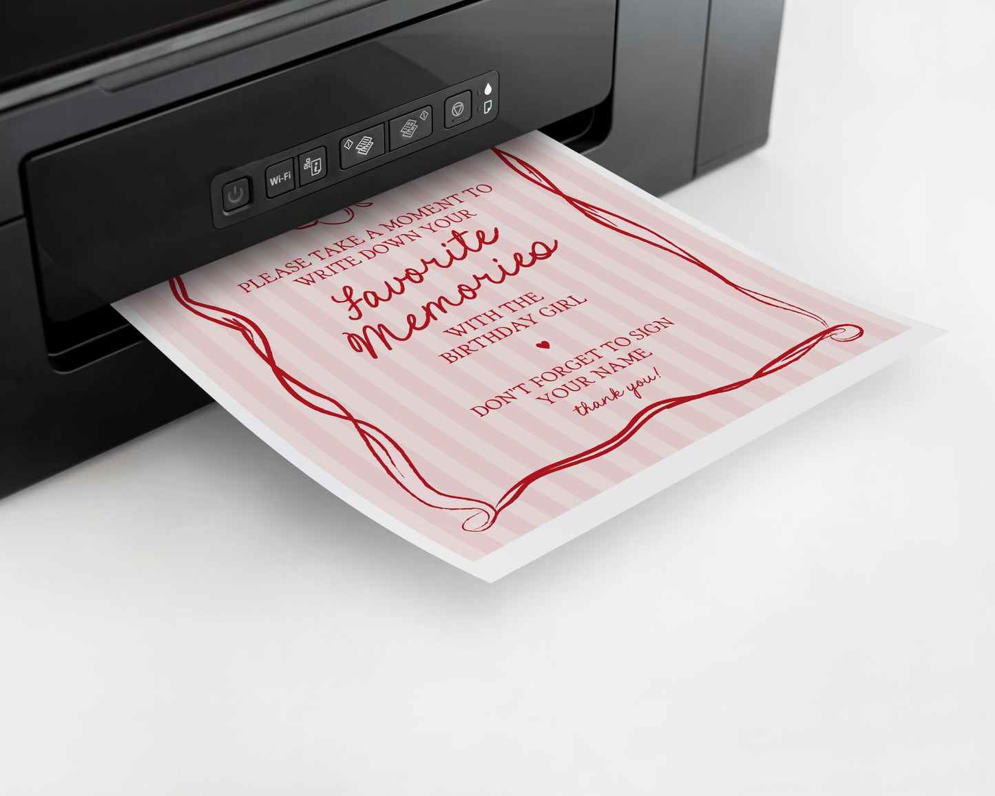 Pink Cherry Coquette Bow Favorite Memories Birthday Girl Template