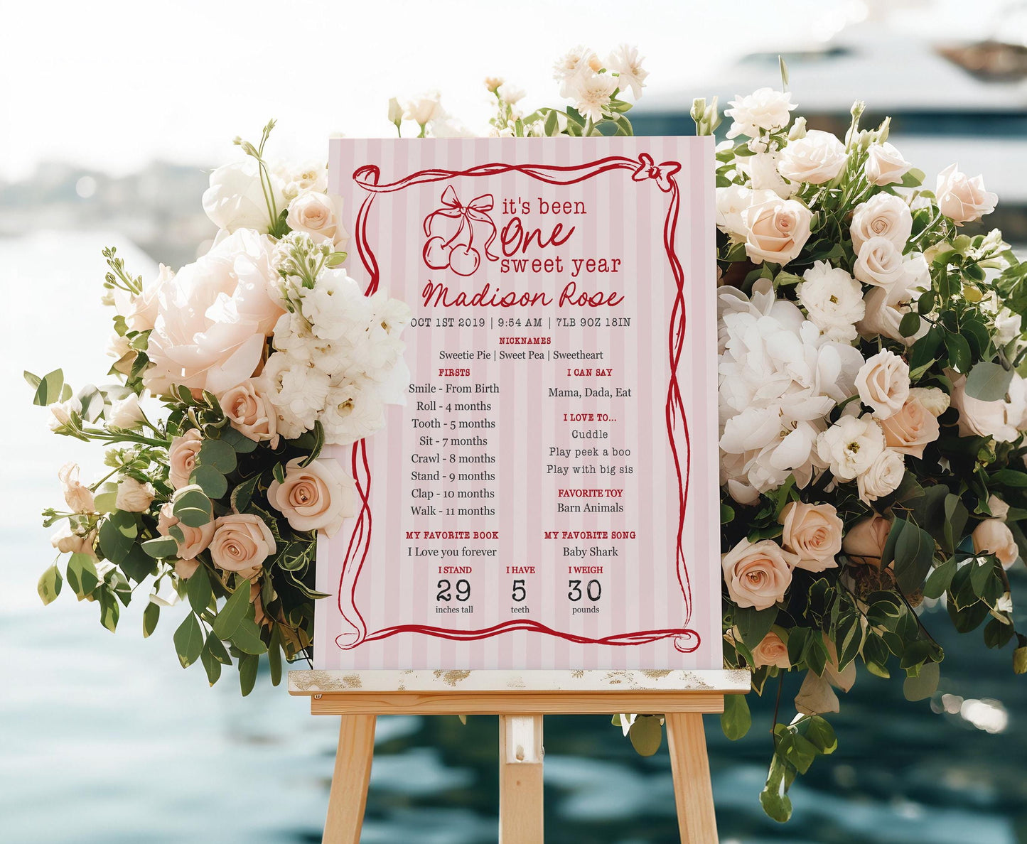 Pink Cherry Coquette Bow Time Capsule Template, Retro Cherry on Top Theme 1st Birthday, Hand Drawn Cherry First Party Decor WP1038