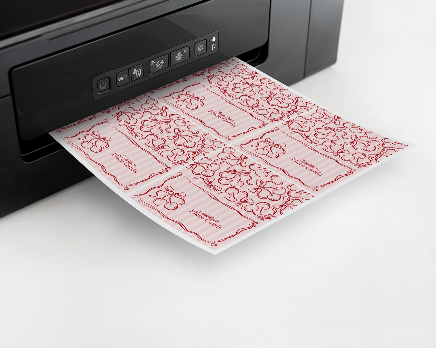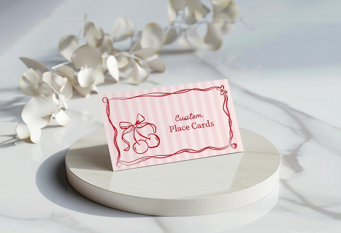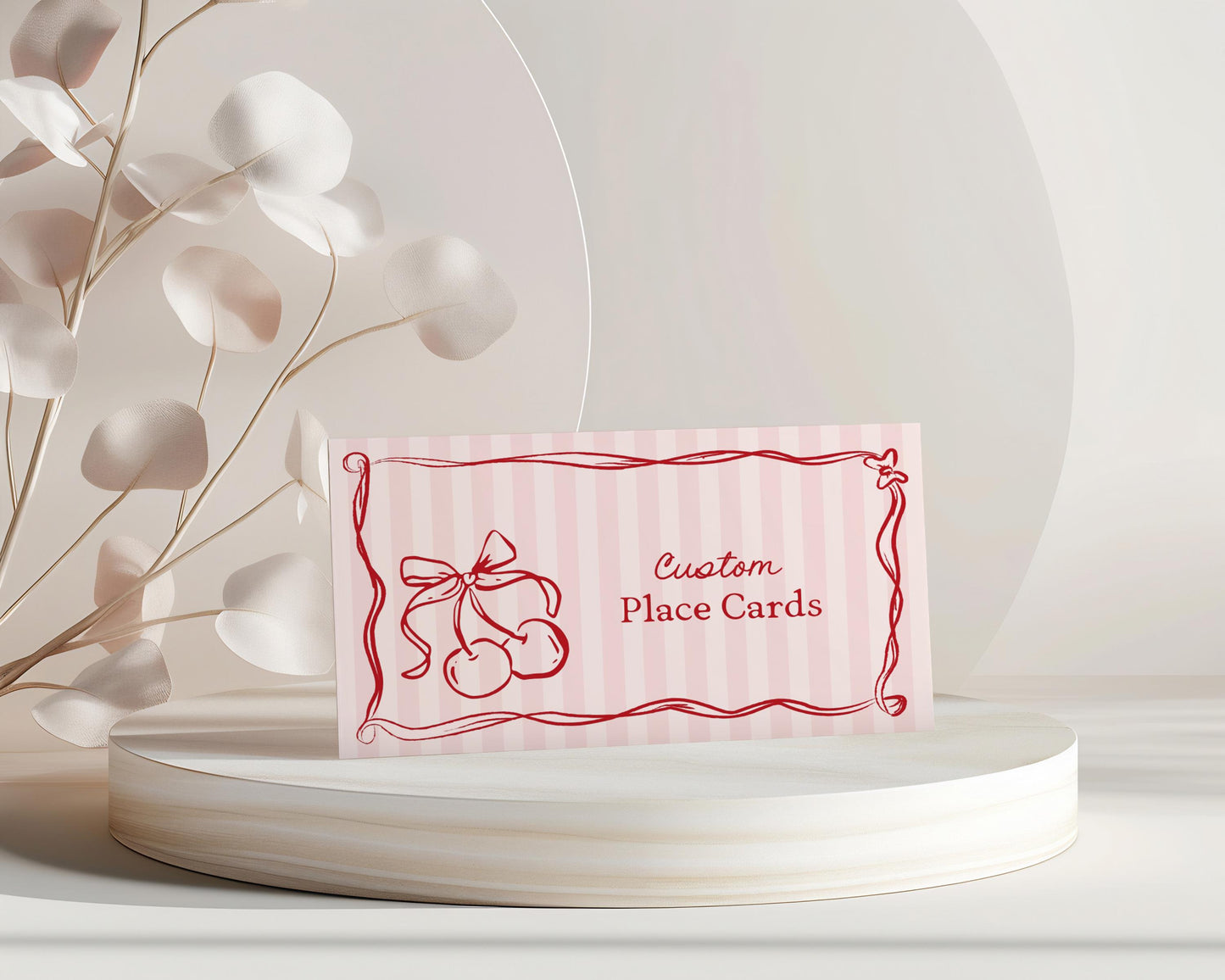 Pink Cherry Coquette Bow Place Cards, Retro Cherry on Top Baby Shower, Cherry Sweet Bridal Shower, Hand Drawn Birthday Party Decor WP1038