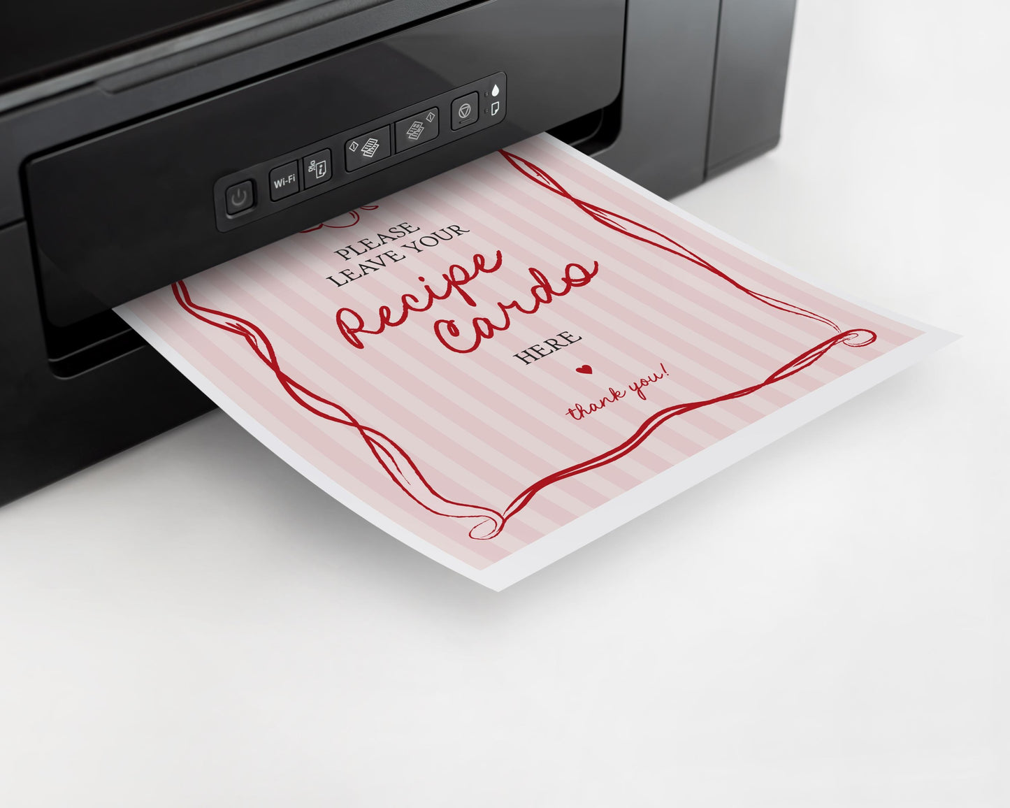 Pink Cherry Coquette Bow Recipe Card Bridal Shower Template