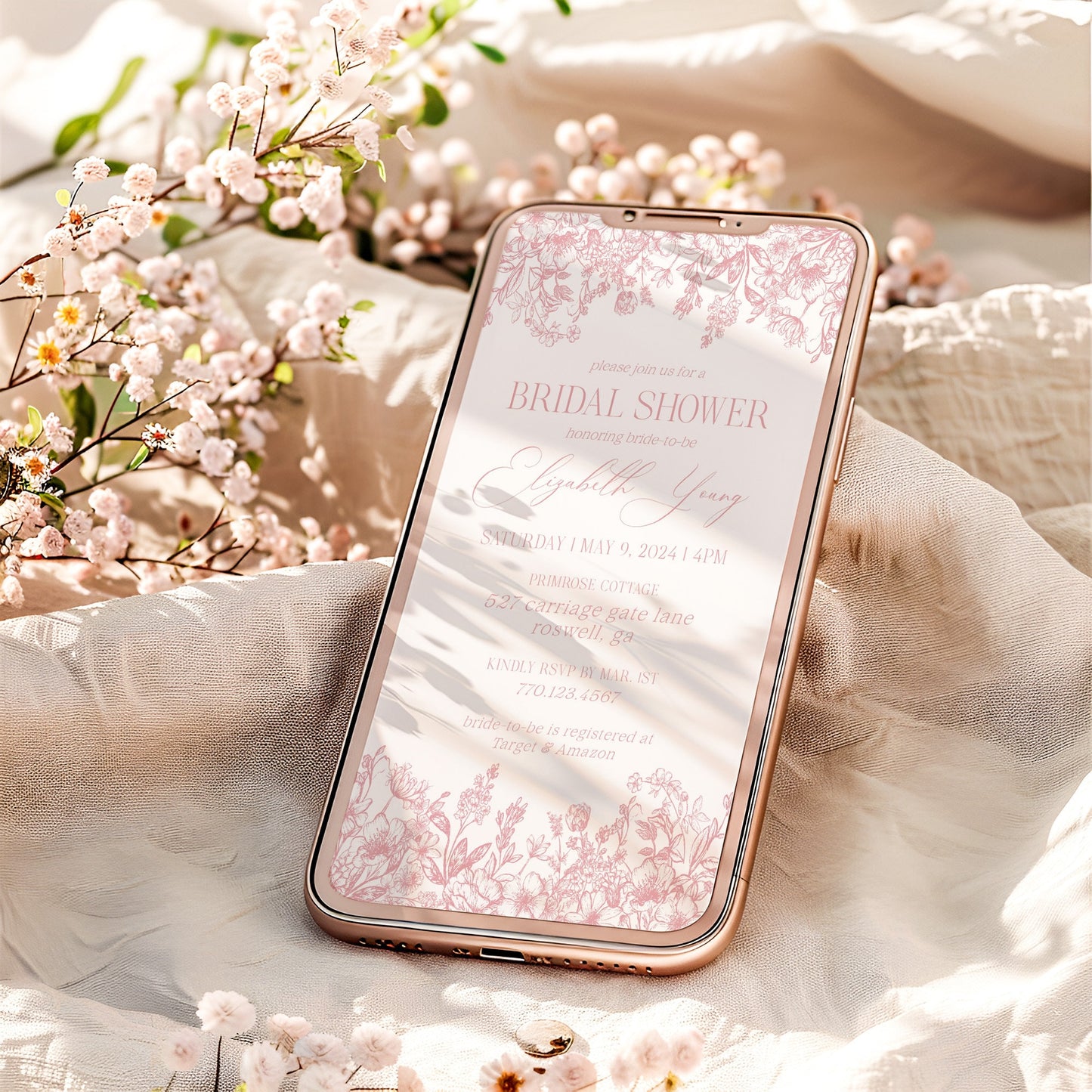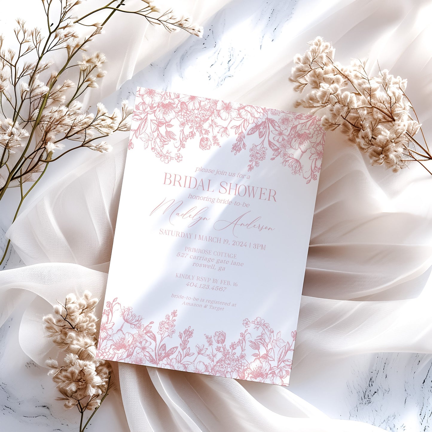 Pink Chinoiserie Baby Shower Invitation Printable Template, Pink Toile Baby Shower for Spring, Elegant Shower Decor for French Baby Shower
