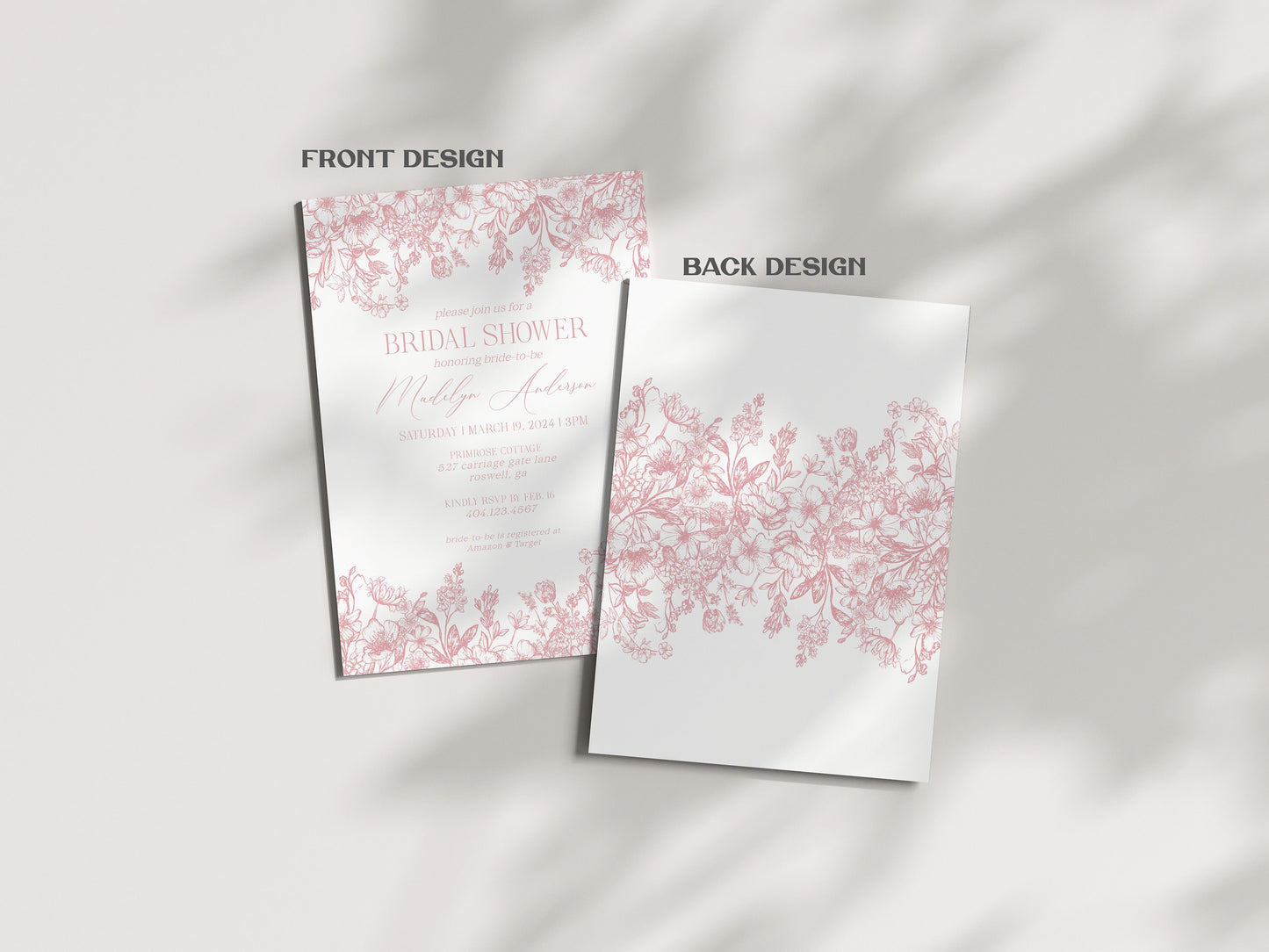 Pink Chinoiserie Bridal Shower Invitation Bundle Printable Template