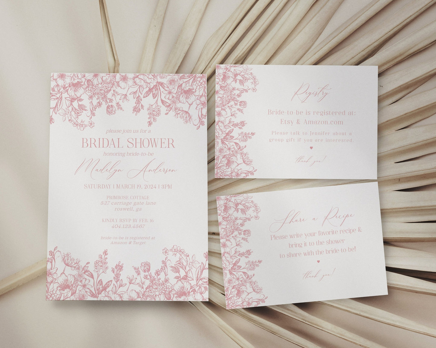 Pink Chinoiserie Recipe Card Printable Template for Bridal Shower, Pink Chinoiserie Toile Bridal Shower, Spring Decor, French Bridal Brunch