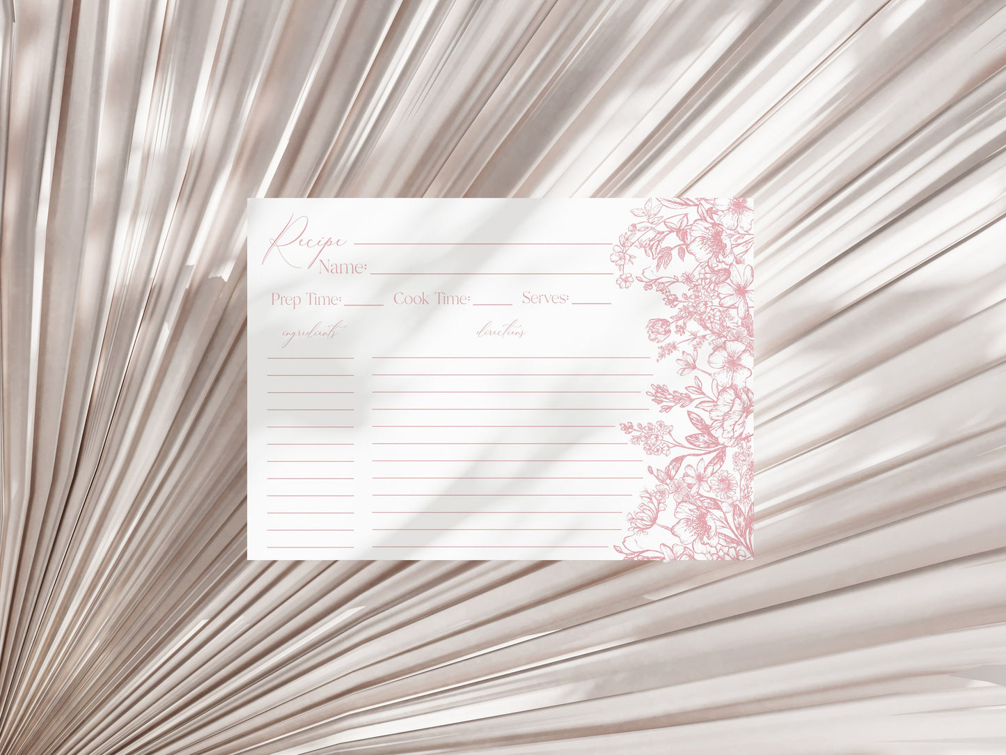 Pink Chinoiserie Recipe Card Printable Template for Bridal Shower