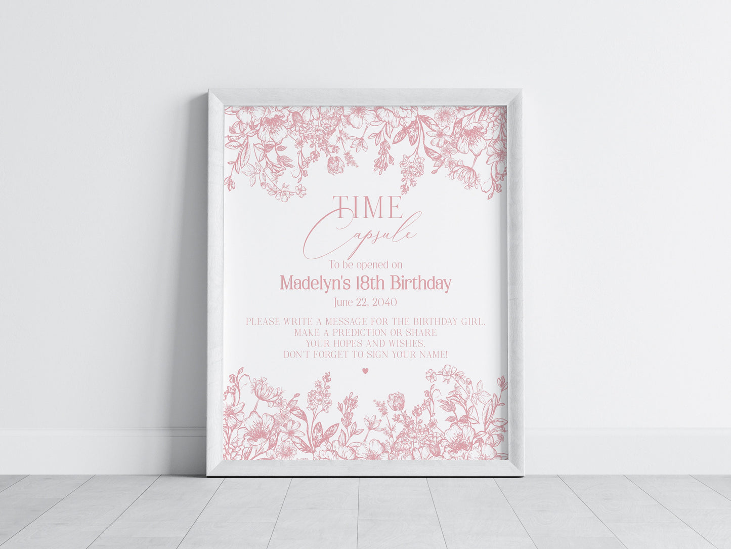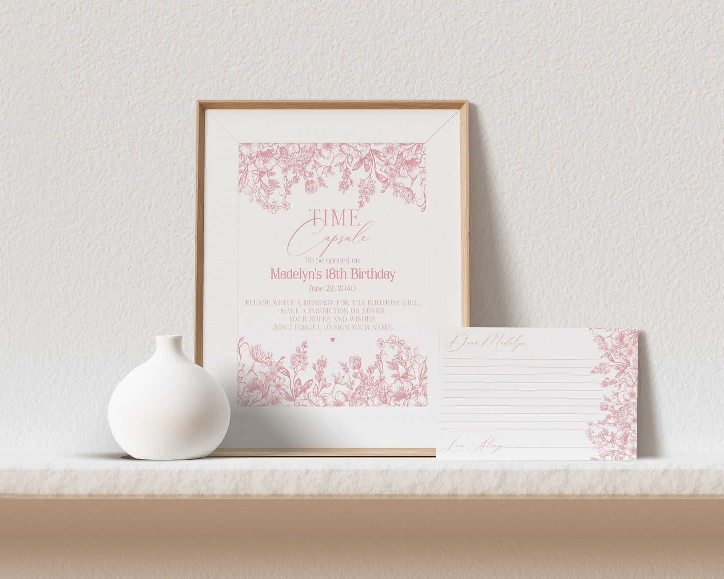 Pink Chinoiserie Time Capsule Printable Template, Elegant Pink Toile Decor for Birthday Party, French Theme Spring Birthday Party