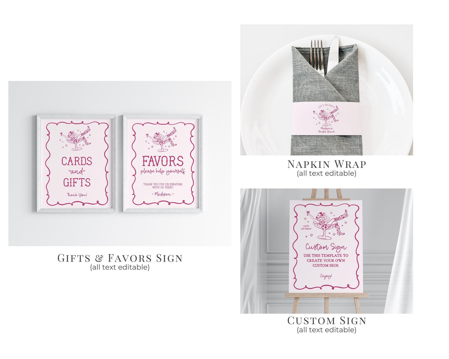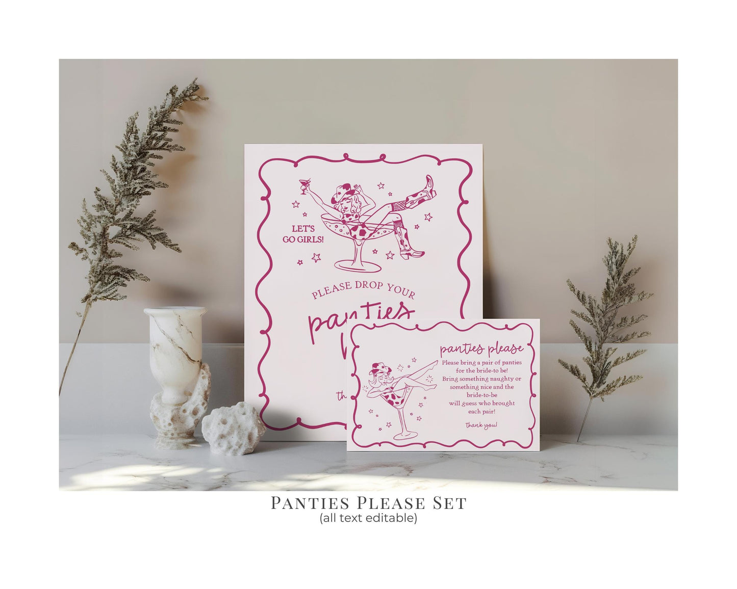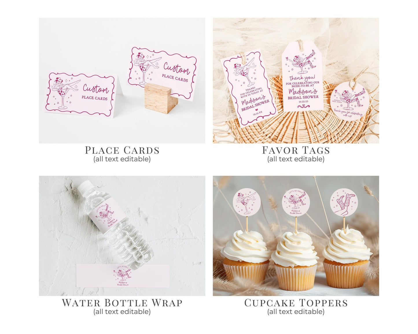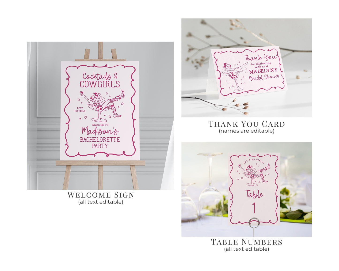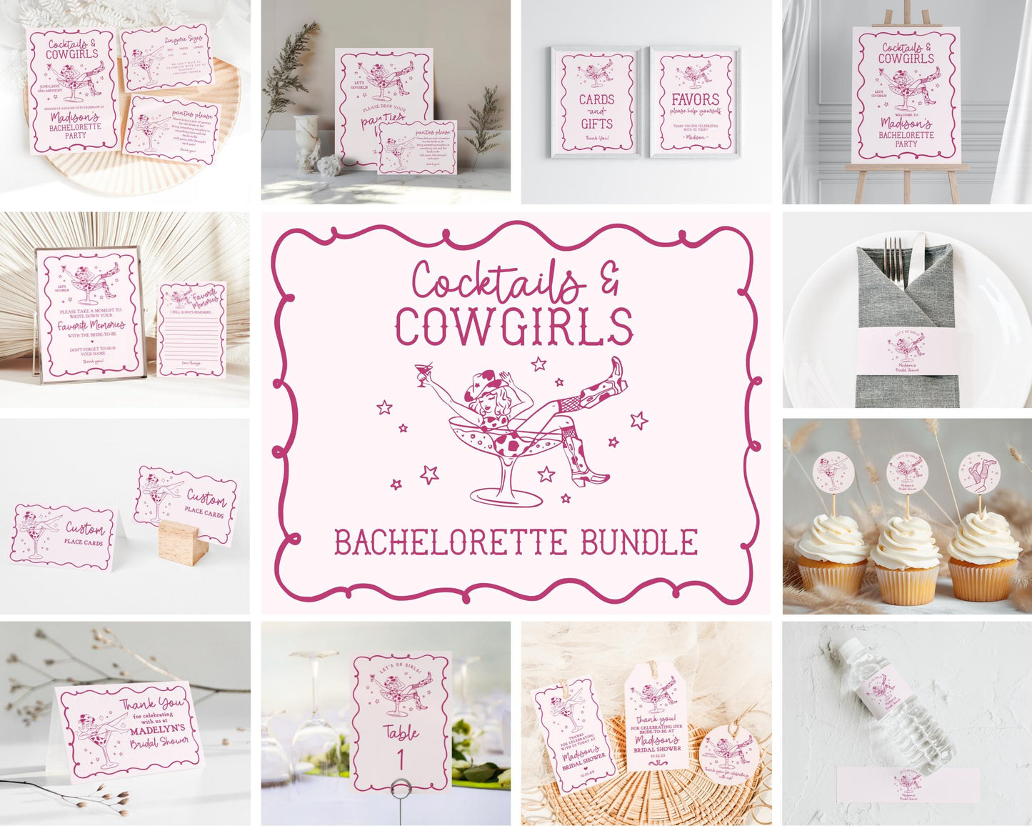 Pink Cocktails and Cowgirls Bachelorette Bundle Template