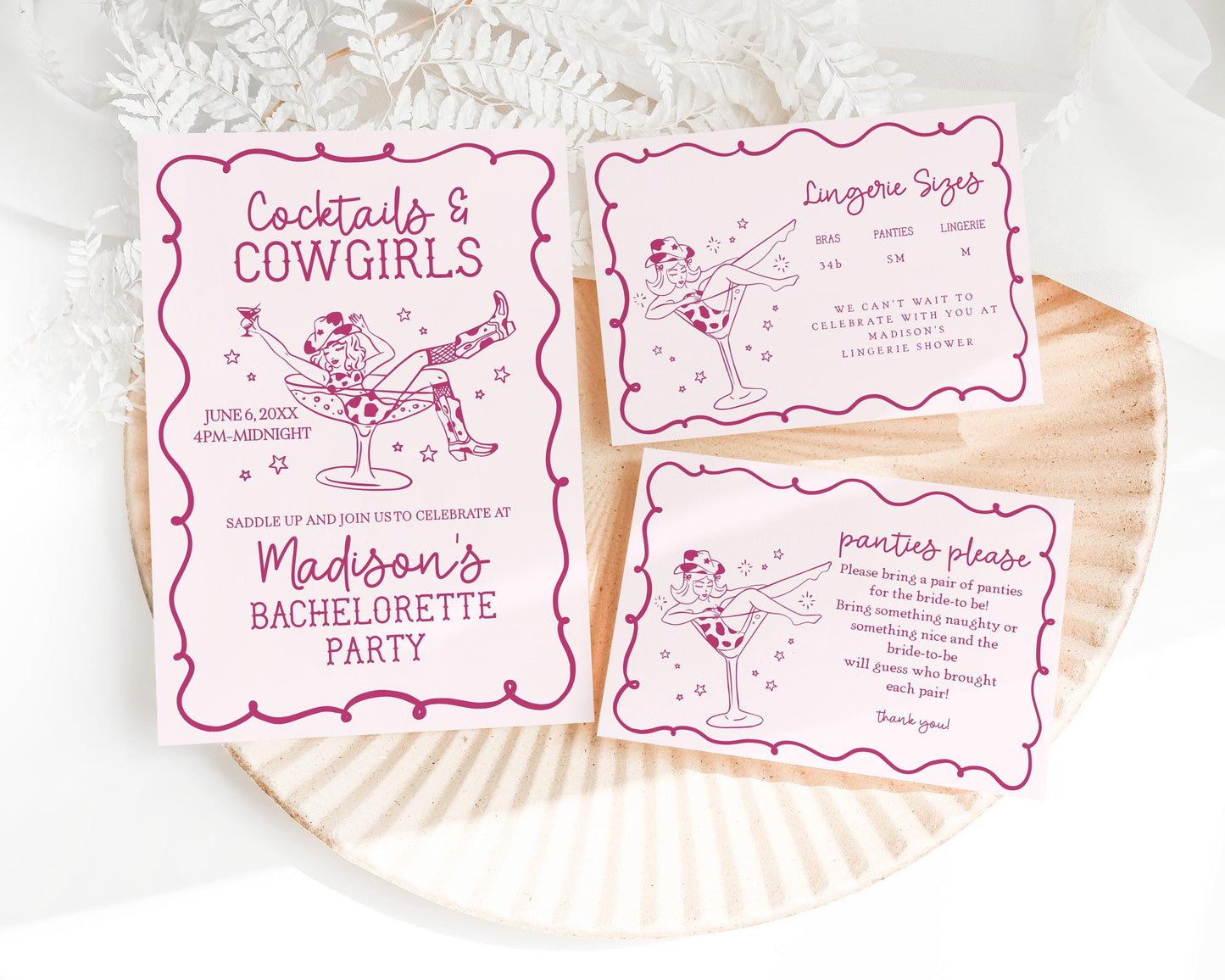 Pink Cocktails and Cowgirls Bachelorette Bundle Template