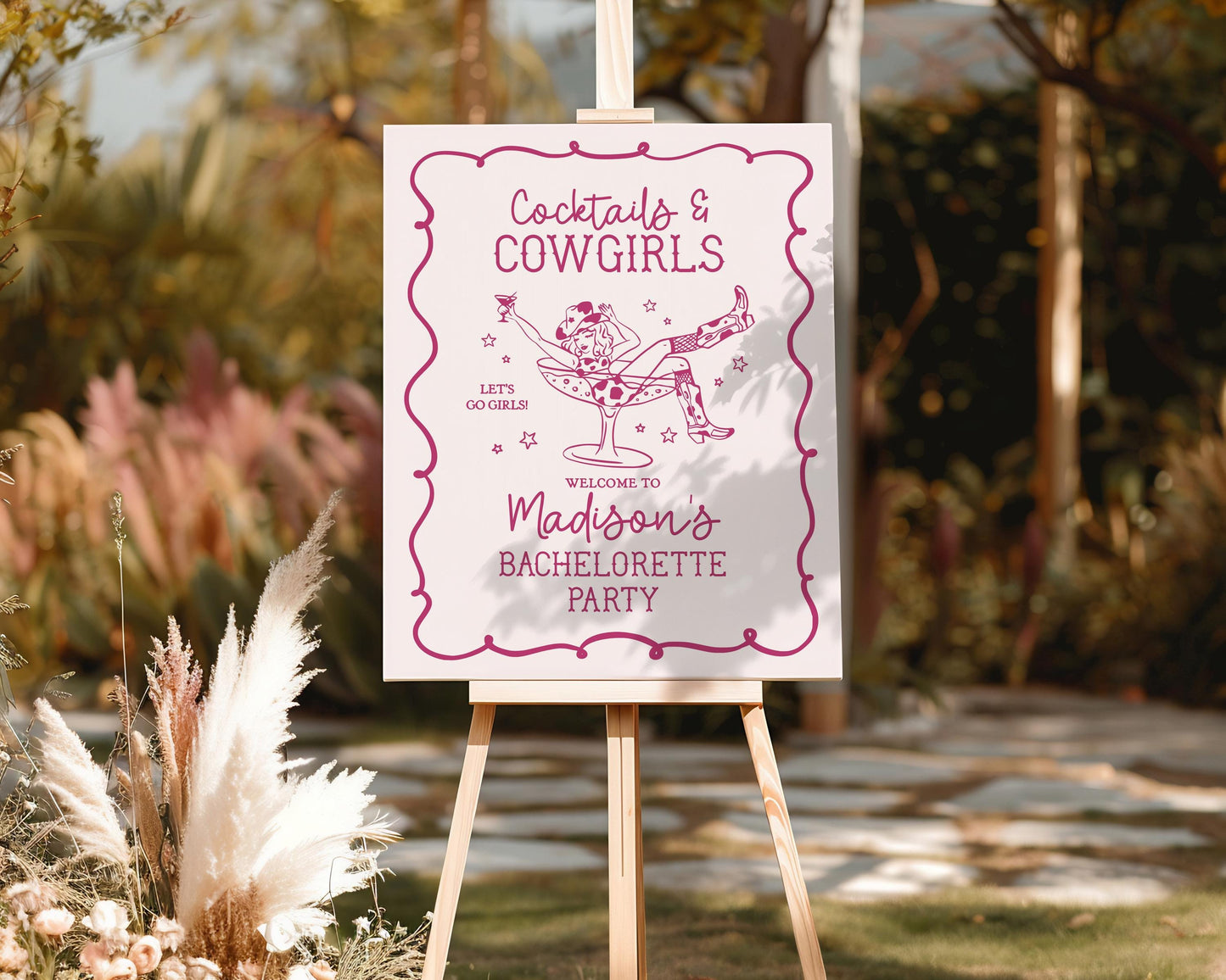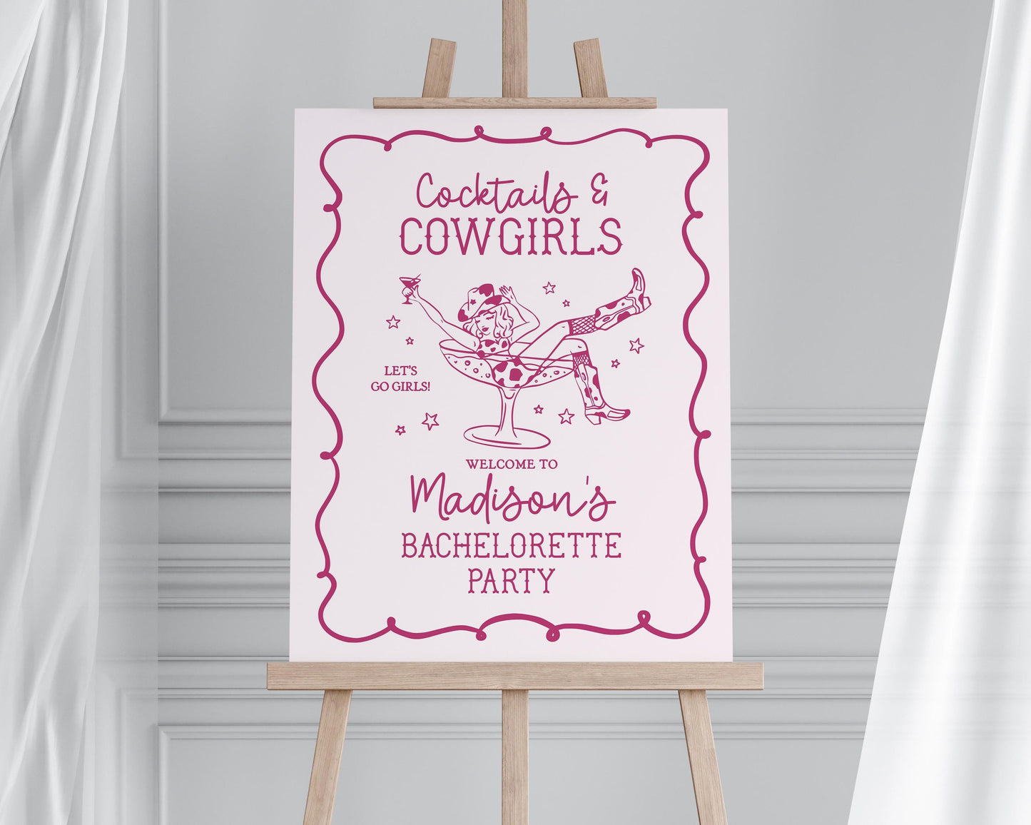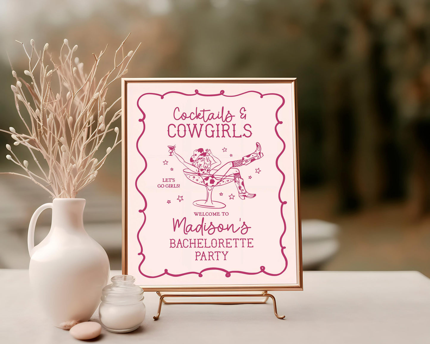 Pink Cocktails and Cowgirls Bachelorette Welcome Sign Template