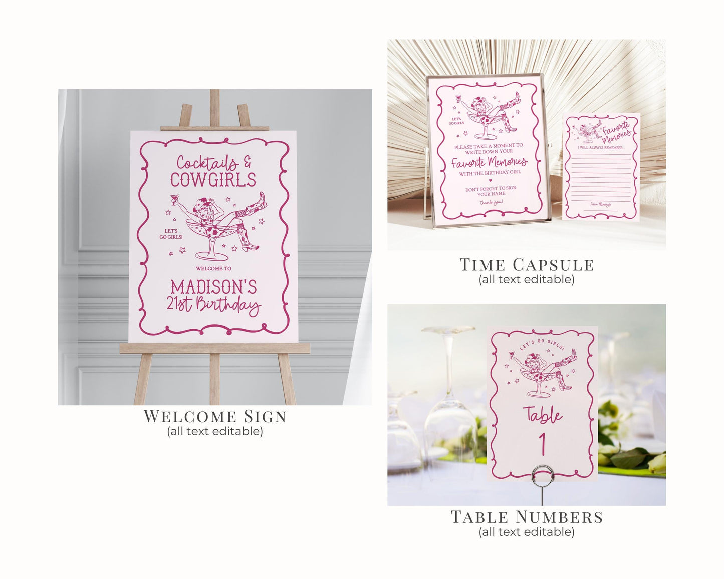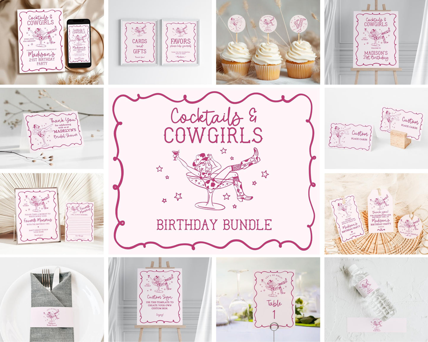 Pink Cocktails and Cowgirls Birthday Bundle Template
