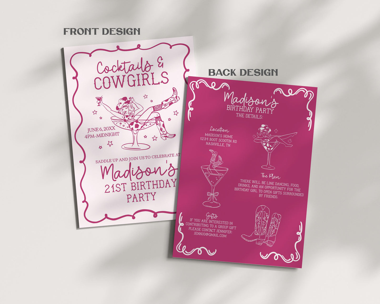 Pink Cocktails and Cowgirls Birthday Bundle Template, Nashville Birthday Weekend, Western Theme Boots and Bubbly Birthday Party WP1040