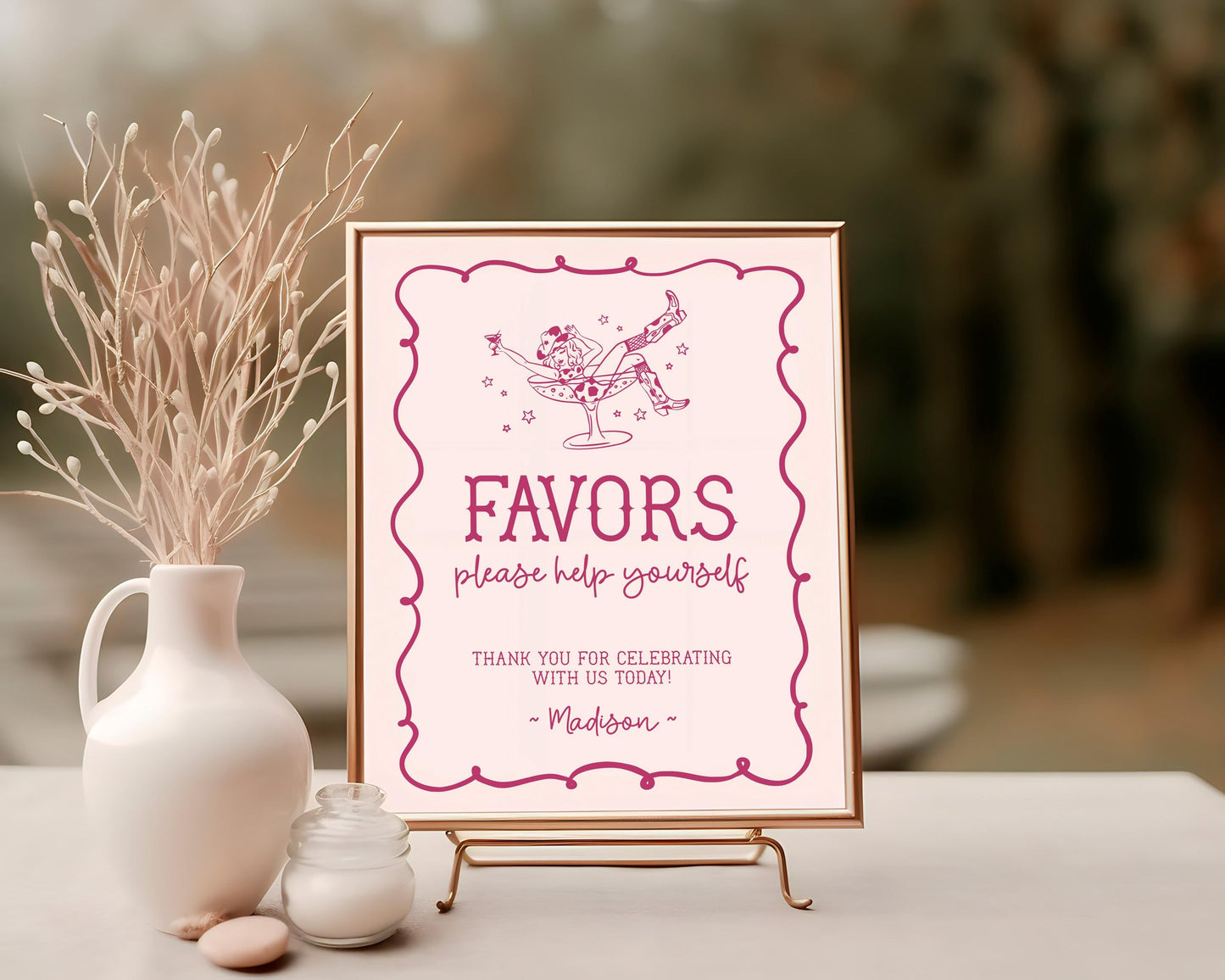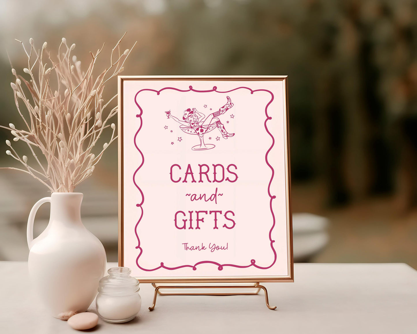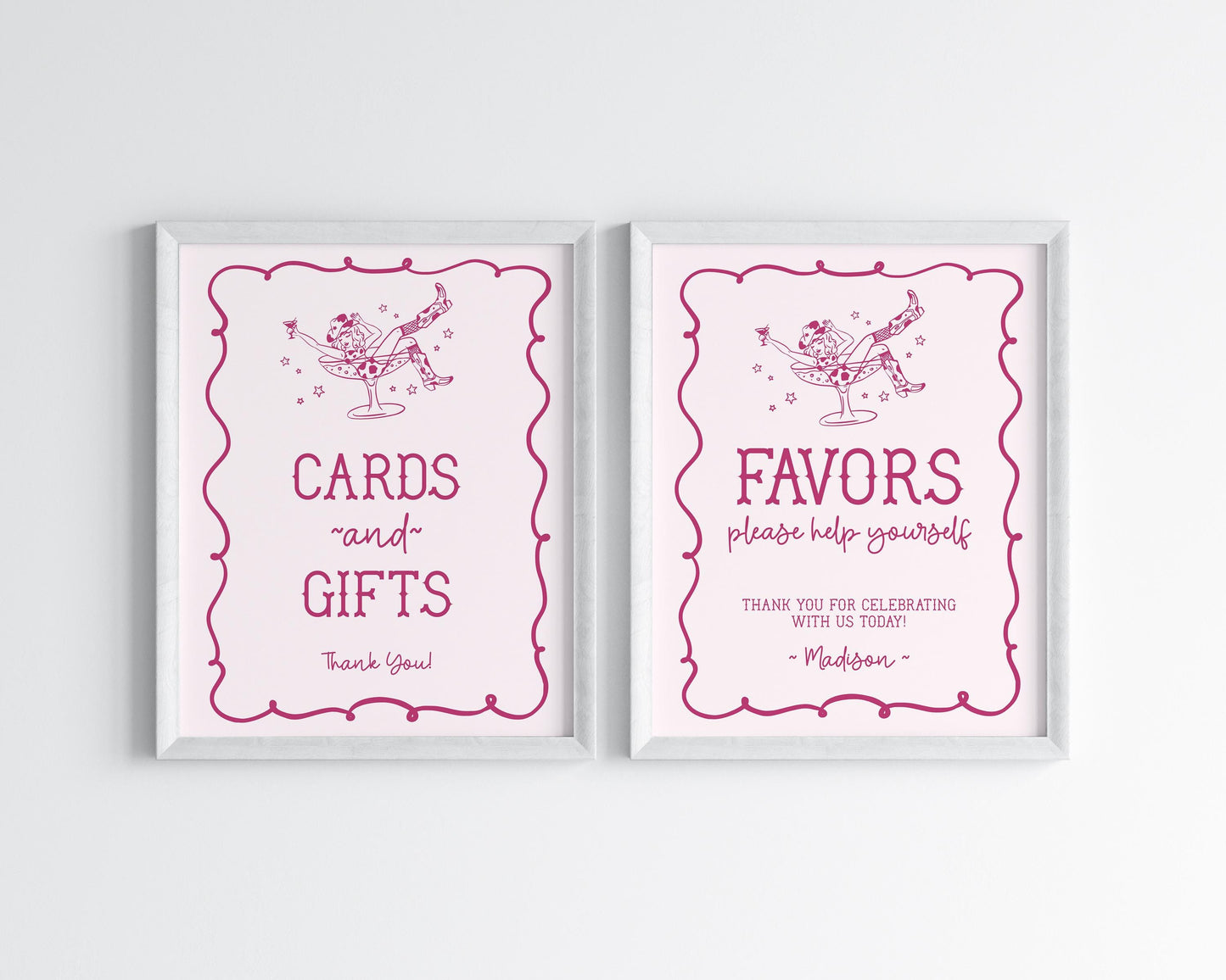 Pink Cocktails and Cowgirls Cards & Gifts, Favors Sign Template, Western Bridal Shower, Nashville Birthday, Last Rodeo Bachelorette WP1040