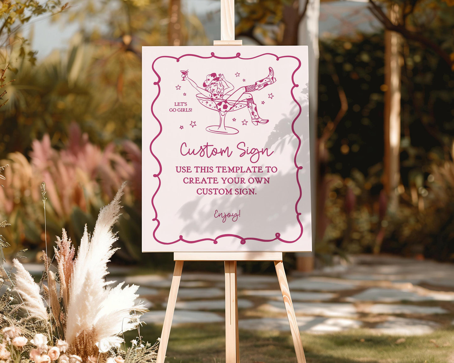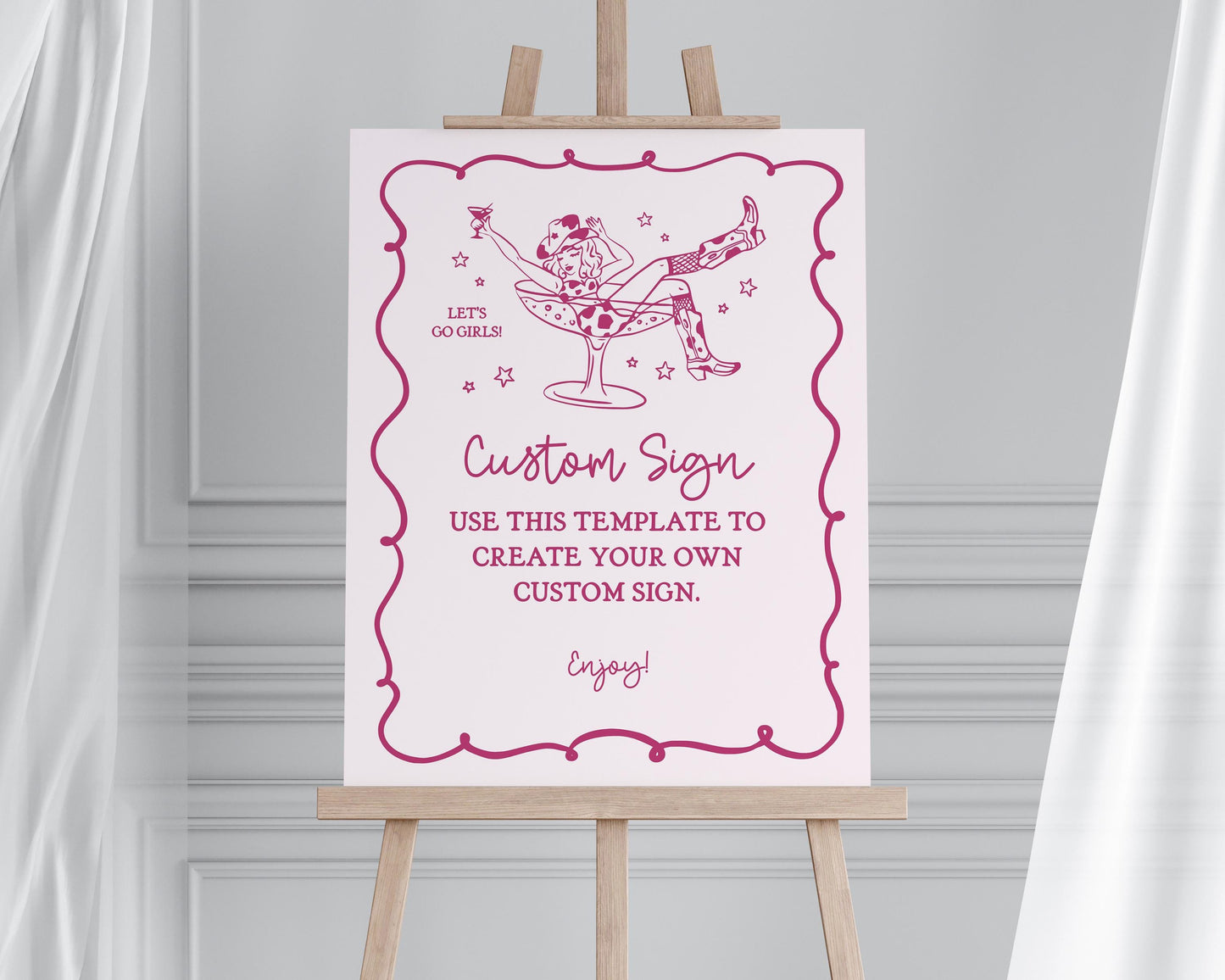 Pink Cocktails and Cowgirls Bachelorette Welcome Sign Template