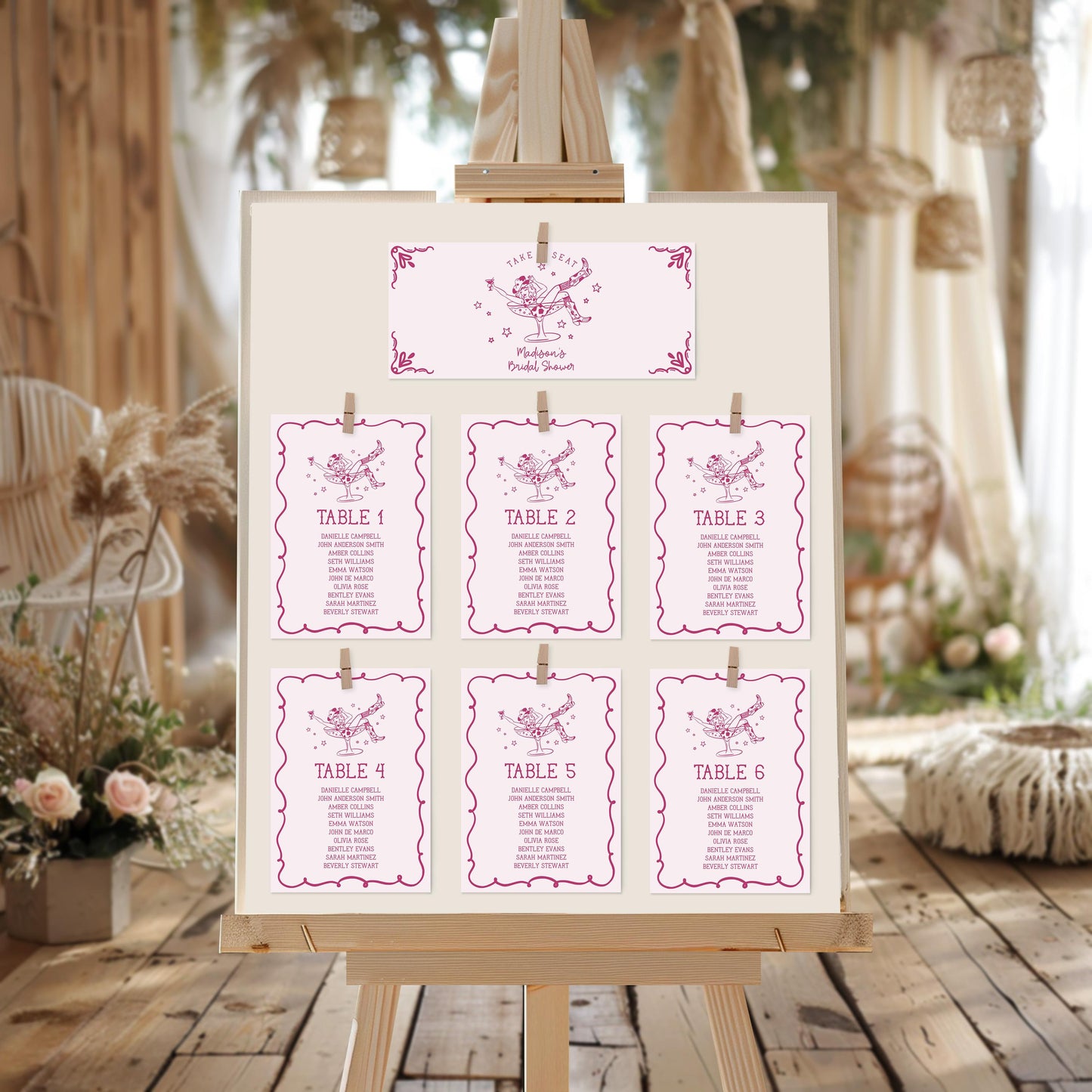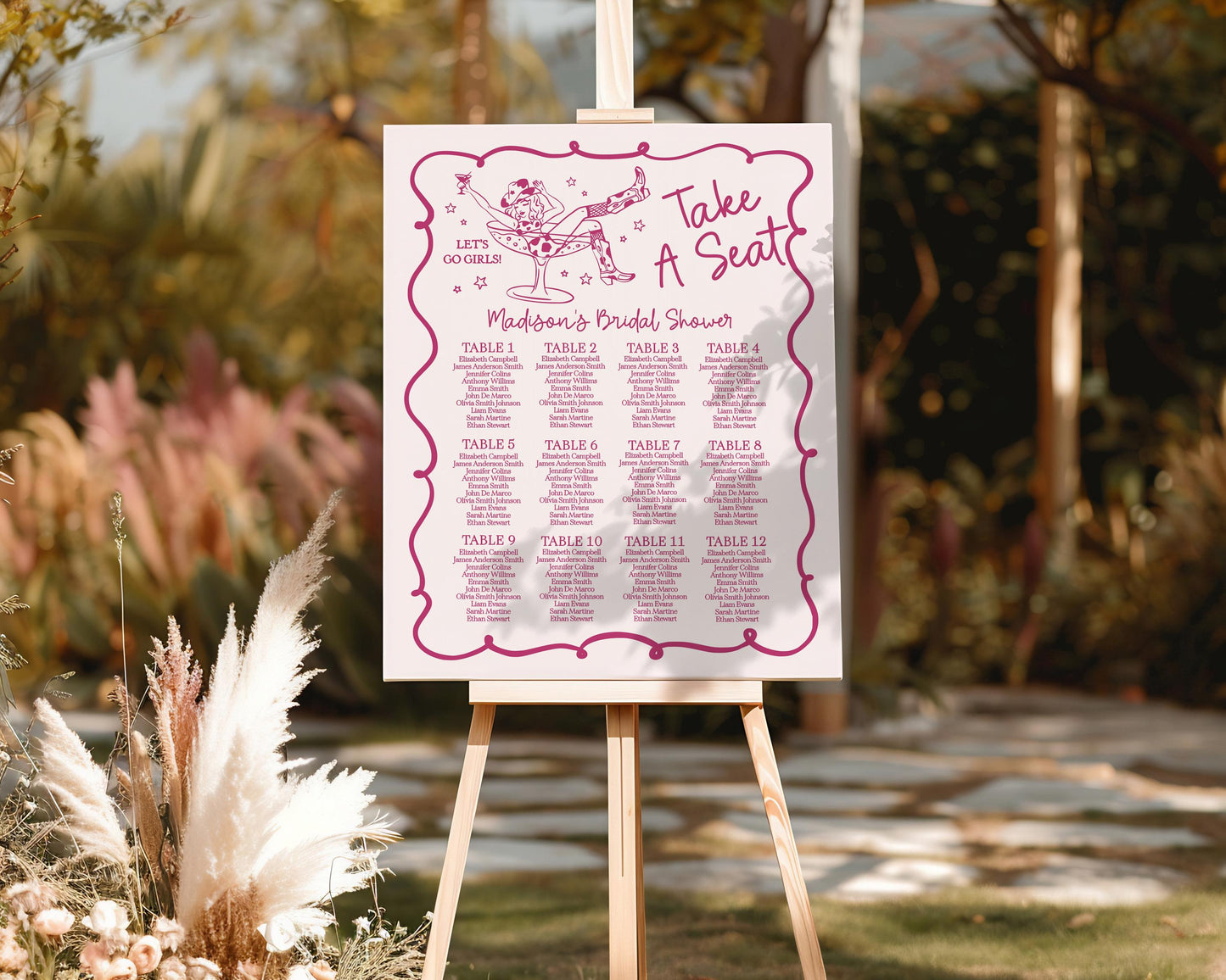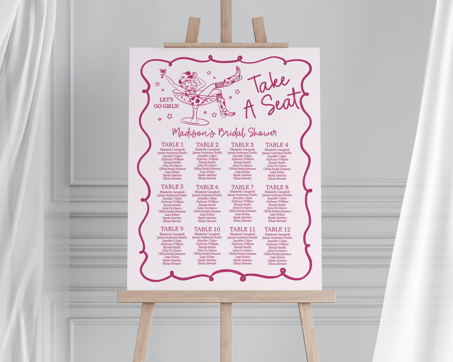 Pink Cocktails and Cowgirls Seating Chart Template, Western Theme Bridal Shower, Nashville Birthday Party, Last Rodeo Bachelorette WP1040