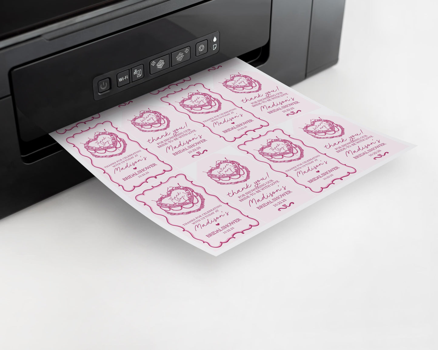 Pink Coquette Heart Cake Bridal Shower Favor Tags Printable Template