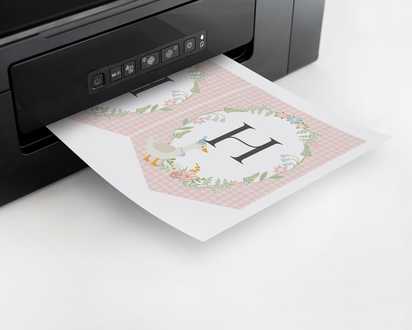 Pink Floral Silly Goose Place Cards Printable Template, Little Duck Theme Girl Birthday Party, Pastel Gingham Baby Shower Sprinkle WP1022
