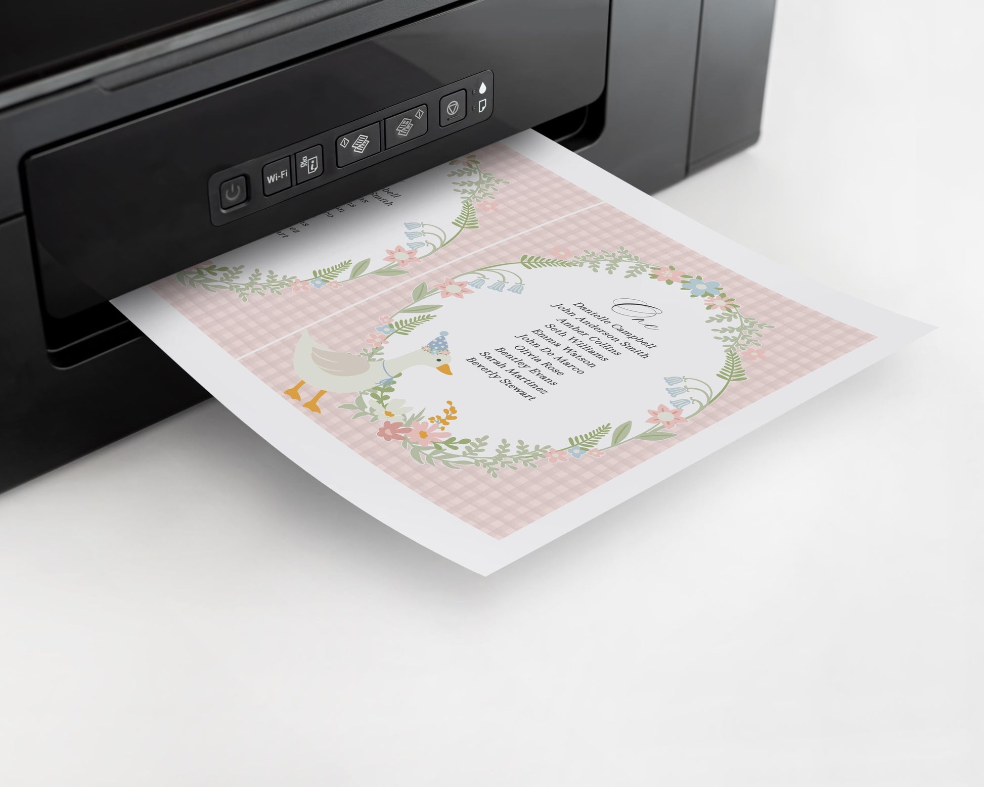 Pink Floral Silly Goose Place Cards Printable Template, Little Duck Theme Girl Birthday Party, Pastel Gingham Baby Shower Sprinkle WP1022