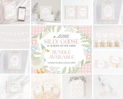 Pink Floral Silly Goose Birthday Bundle Printable Template, Little Duck Theme Baby Shower Girl, Pastel Floral Gingham Baby Sprinkle WP1022