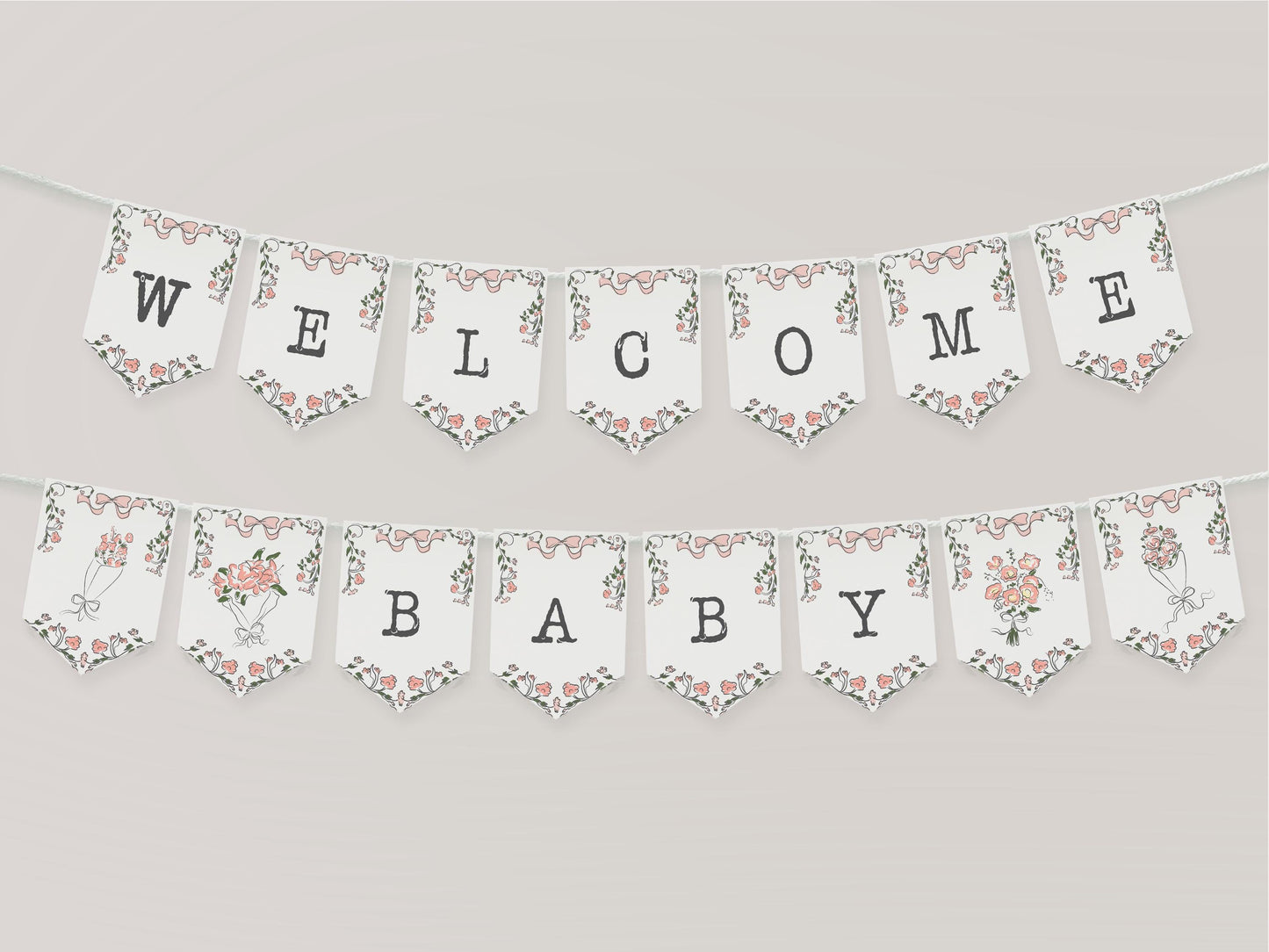 There is a Baby in Bloom! Celebrate your mom-to-be with this fanciful bouquet of hand-drawn florals. This fresh floral theme is inspired by the charm of a French Flower Market, featuring fanciful wildflower doodles tied with a delicate pink coquette bow.