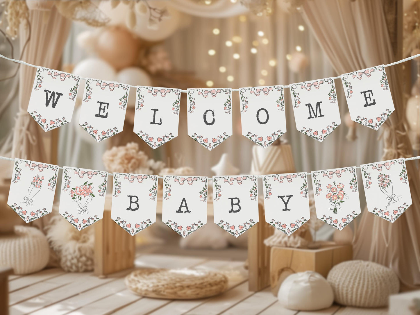 Pink Flower Market Baby Shower Welcome Sign Template, Baby in Bloom Baby Sprinkle for Girl, Locally Grown Pink Coquette Floral WP1044
