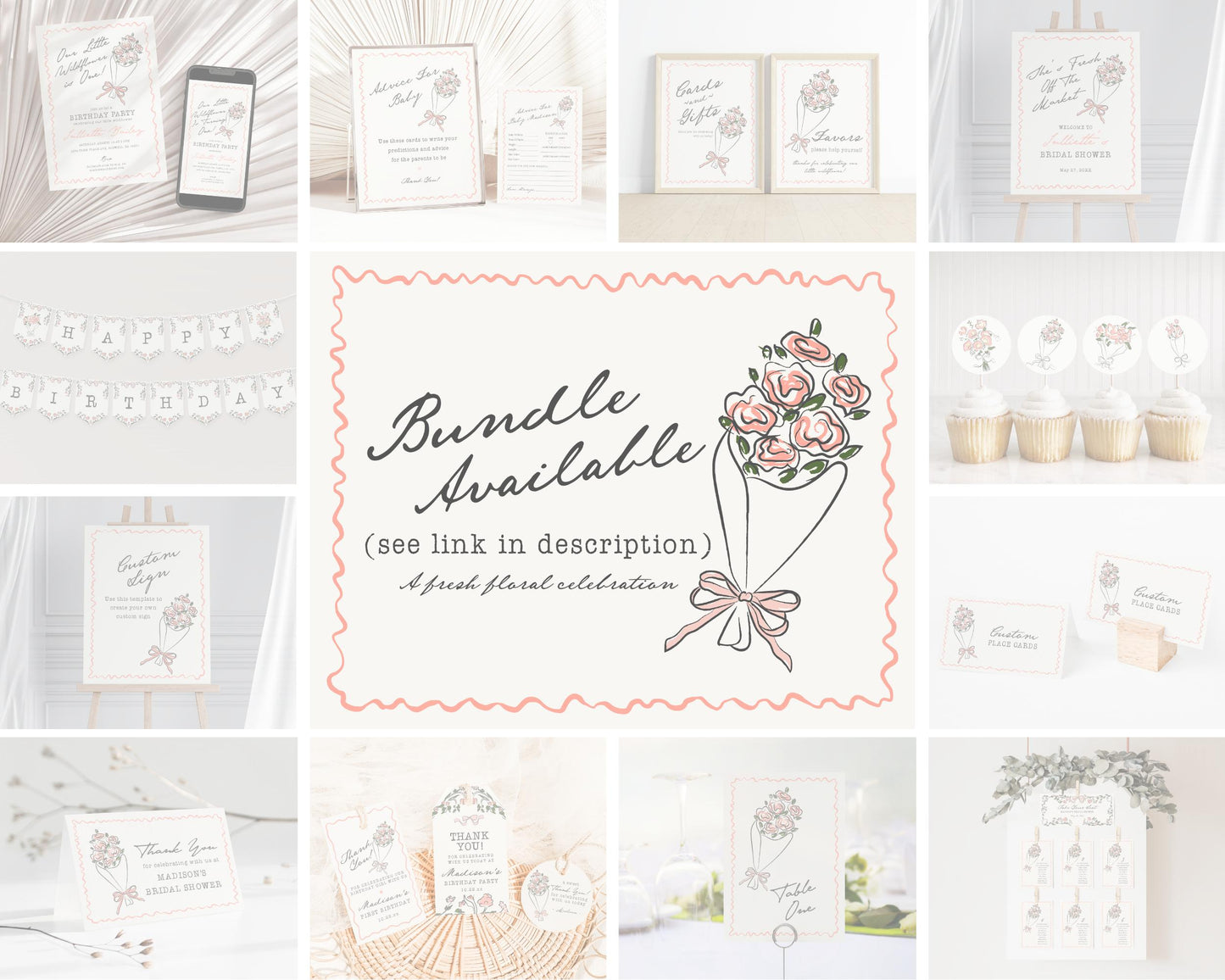 Pink Flower Market Baby Shower Printable Bundle, Baby in Bloom Baby Sprinkle for Girl, Hand Drawn Pink Coquette Floral Doodle WP1044
