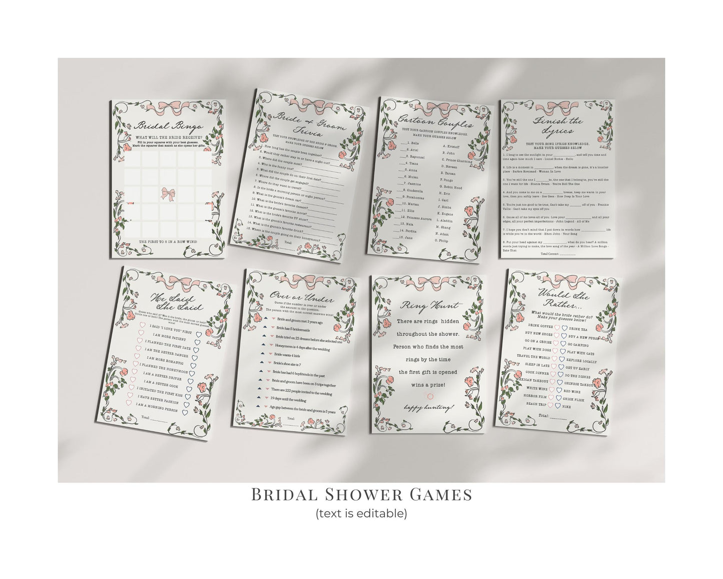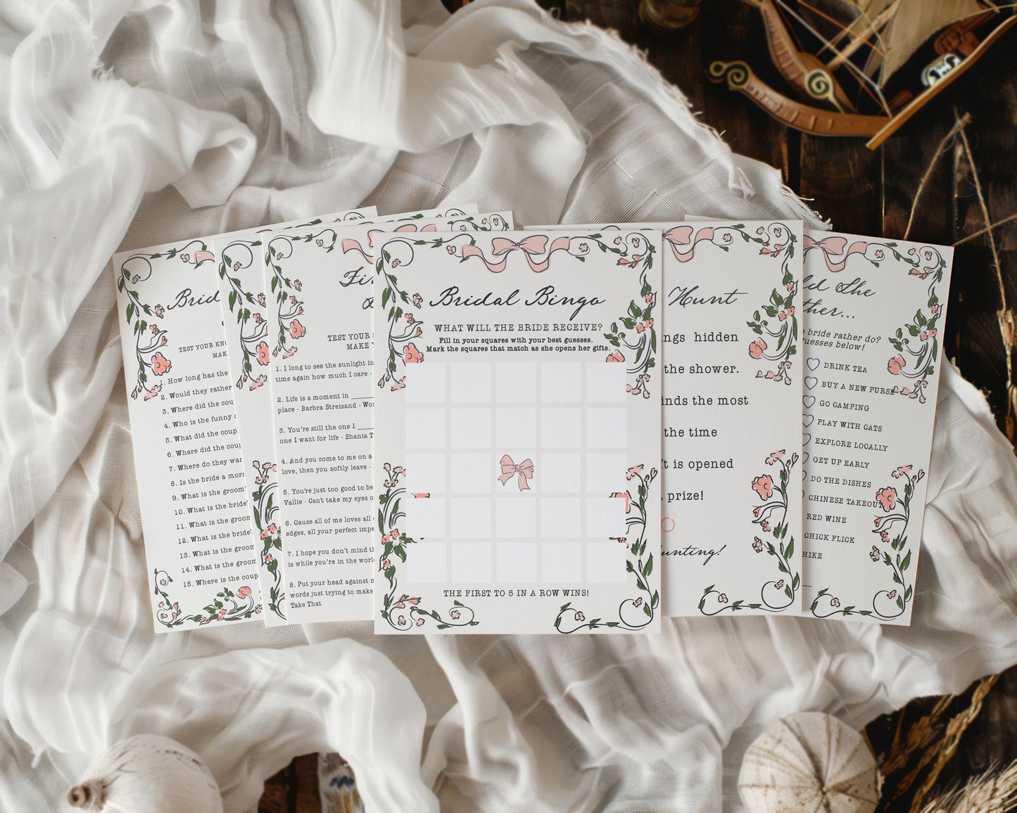 Pink Flower Market Bridal Shower Games Template, Fresh Off The Market Bridal Brunch With Bride, Hand Drawn Pink Coquette Floral WP1044