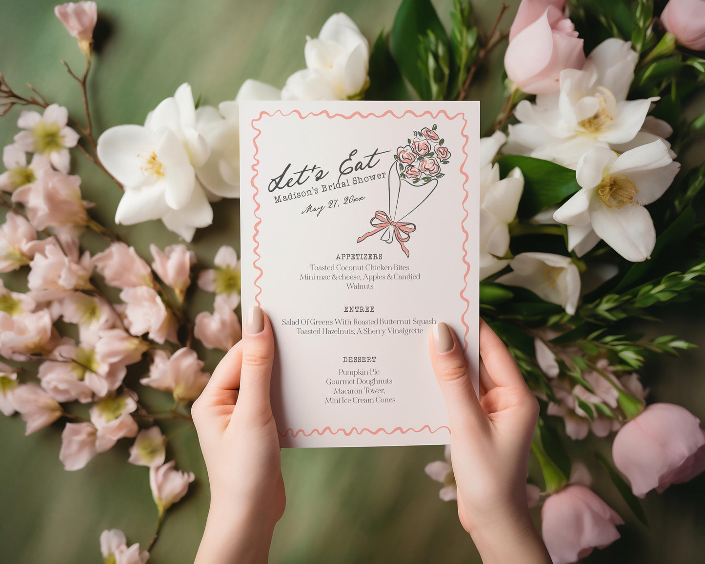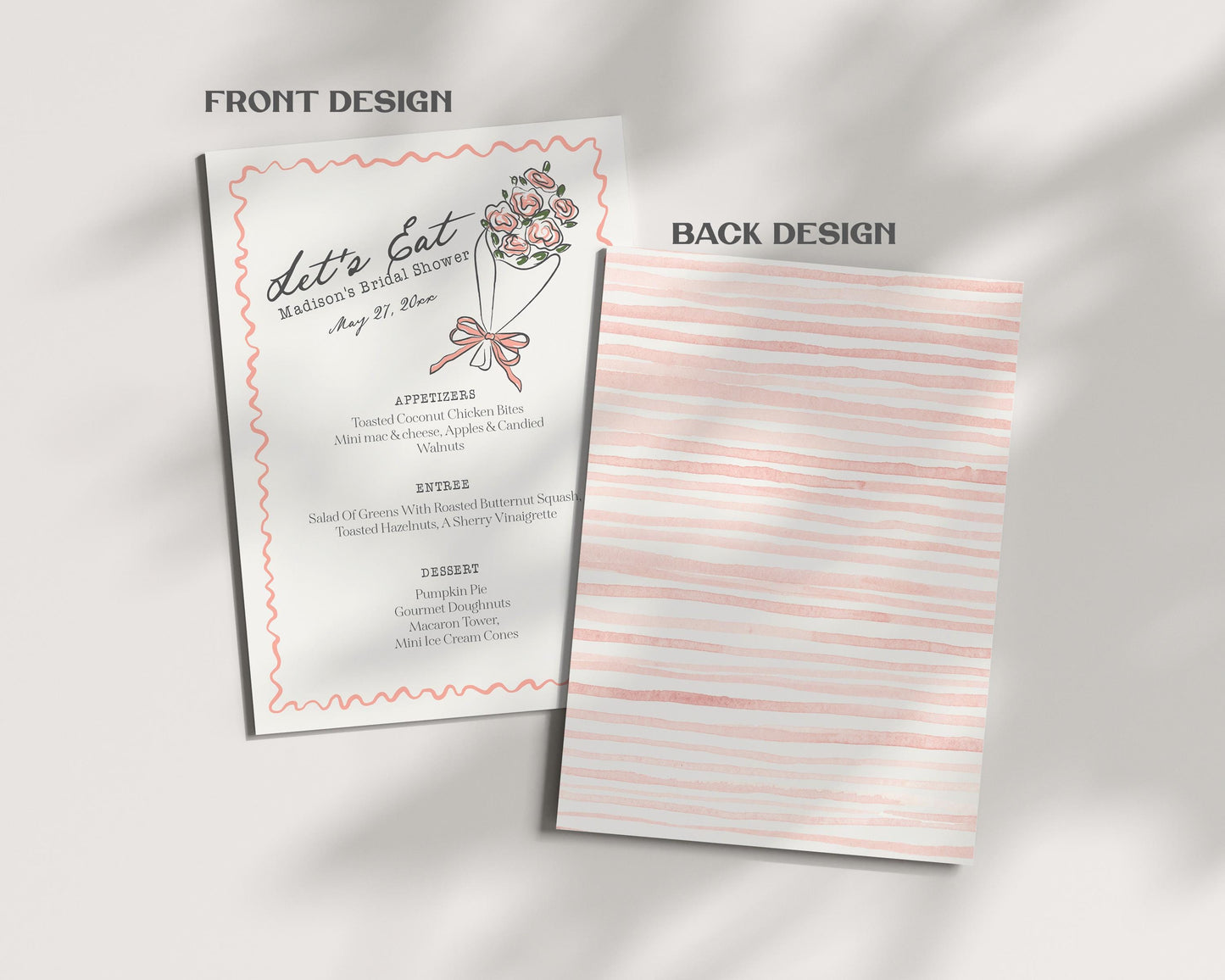Pink Flower Market Menu Template, Market Bridal shower, Wildflower Birthday Party, Baby in Bloom Baby Shower, Pink Coquette Floral WP1044