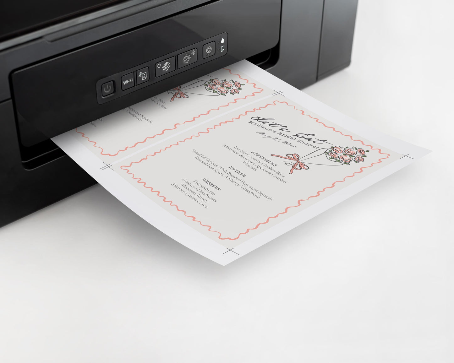 You will be emailed a link to access your template after purchase within a few minutes. No need to install software or fonts. You can print at home, your local print shop or an online print shop.